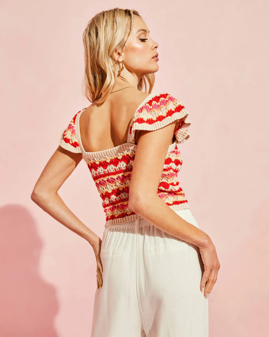 Josephine Cotton Crochet Knit Flutter Sleeve Top