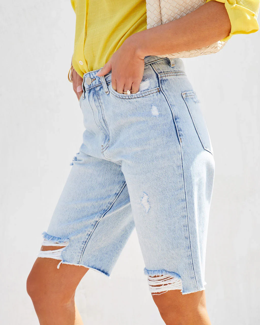 Haley High Rise Distressed Denim Bermuda Shorts
