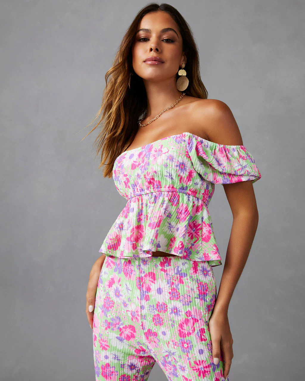 Front Row Floral Plisse Crop Top