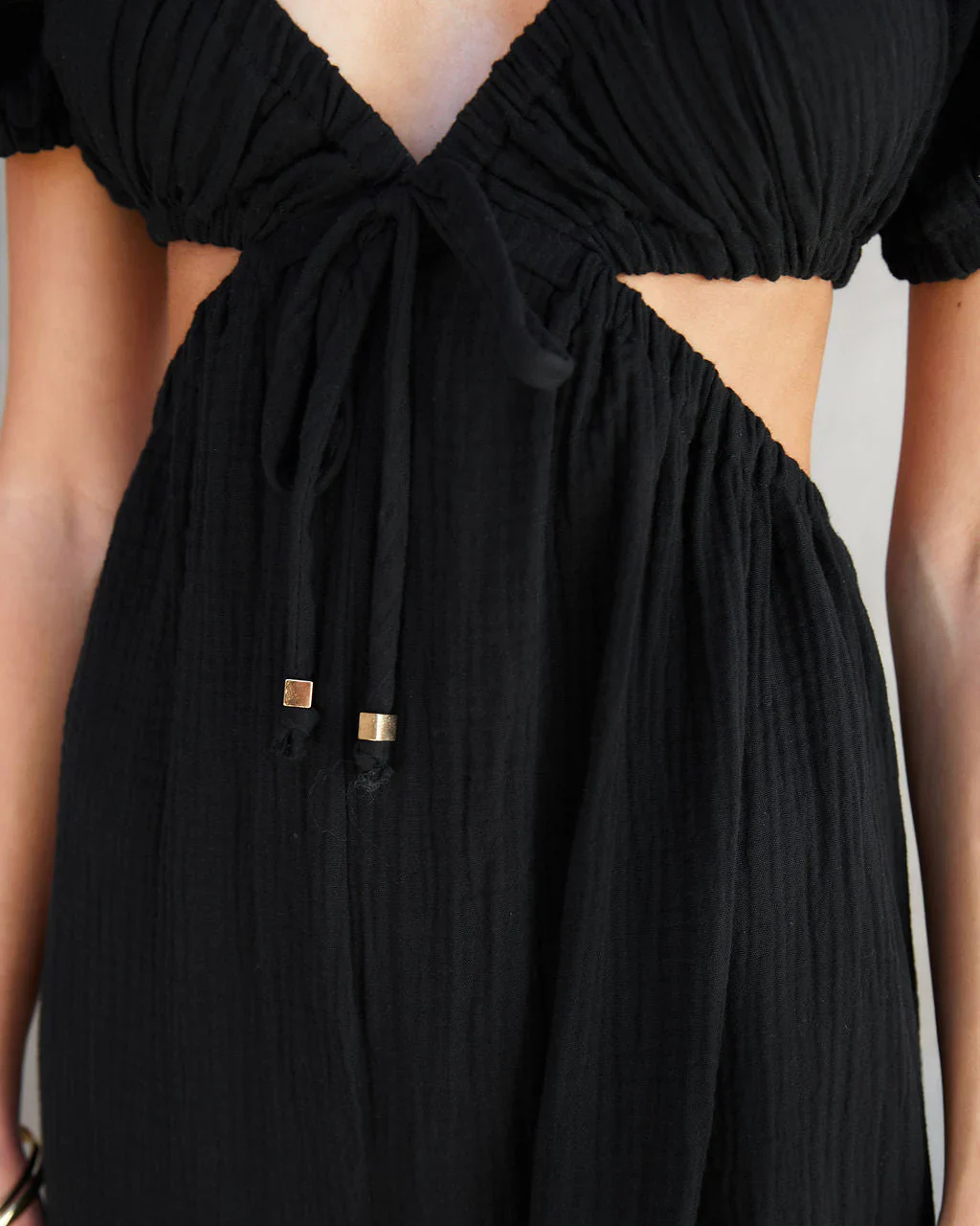 Portofino Breeze Cotton Puff Sleeve Cutout Jumpsuit