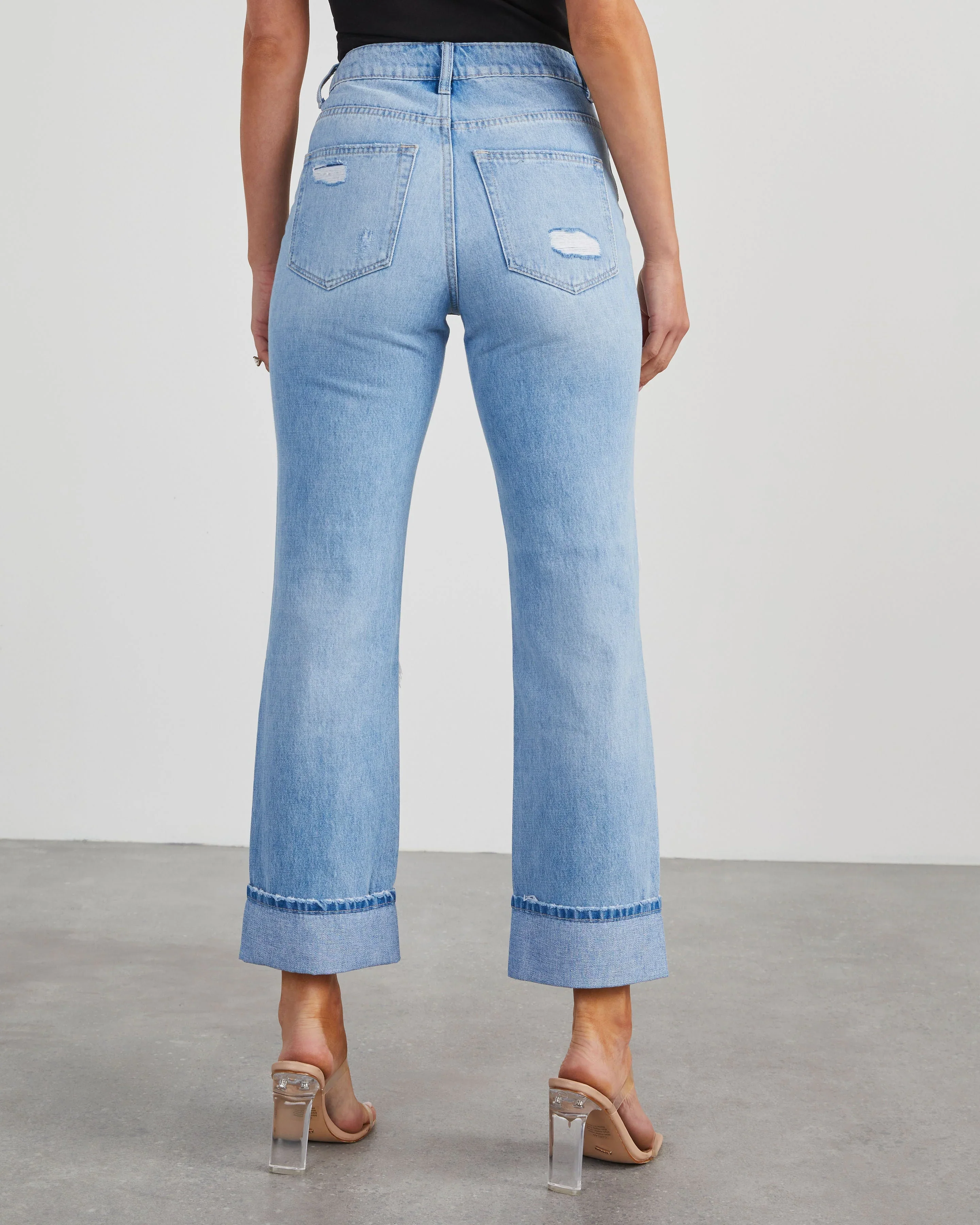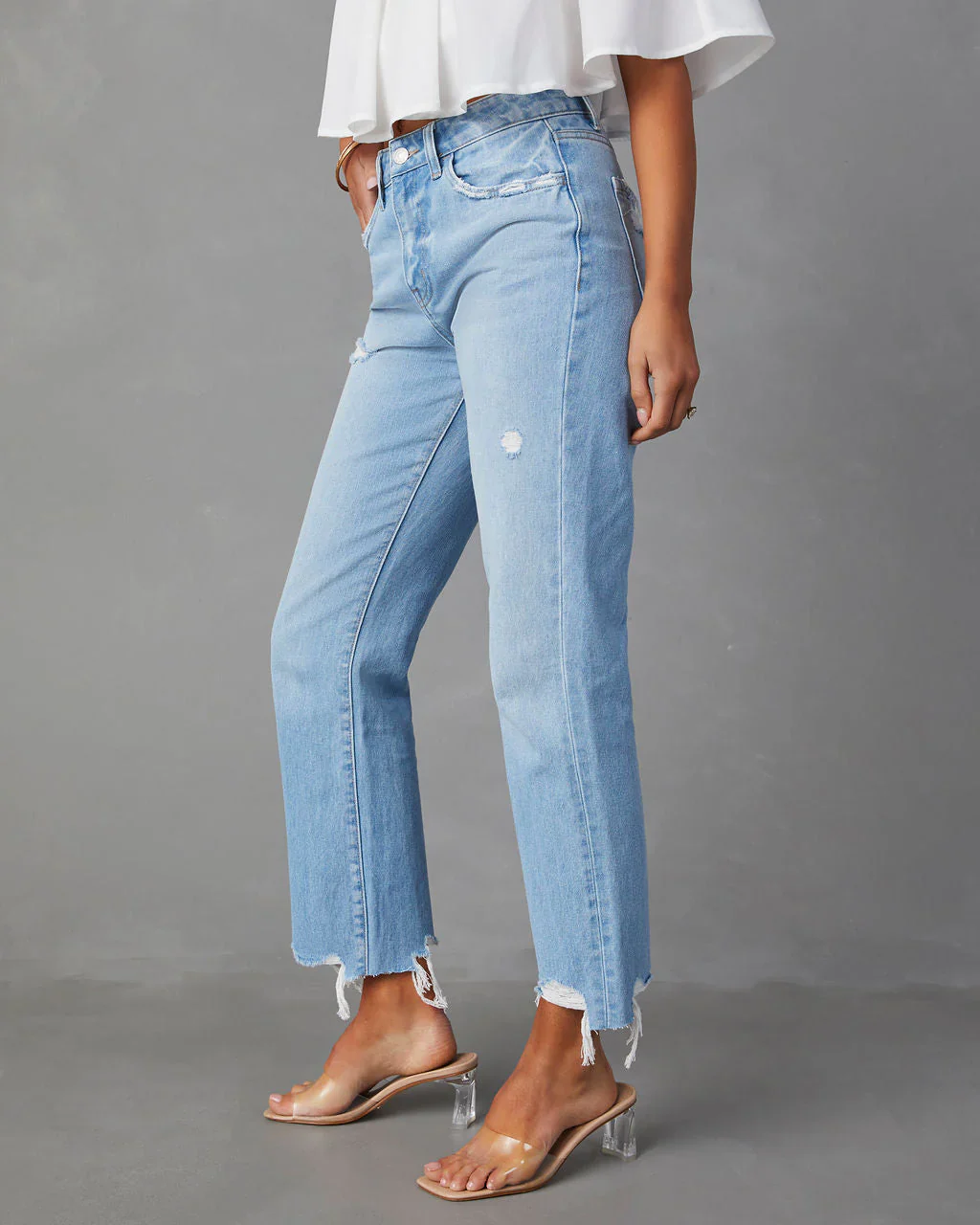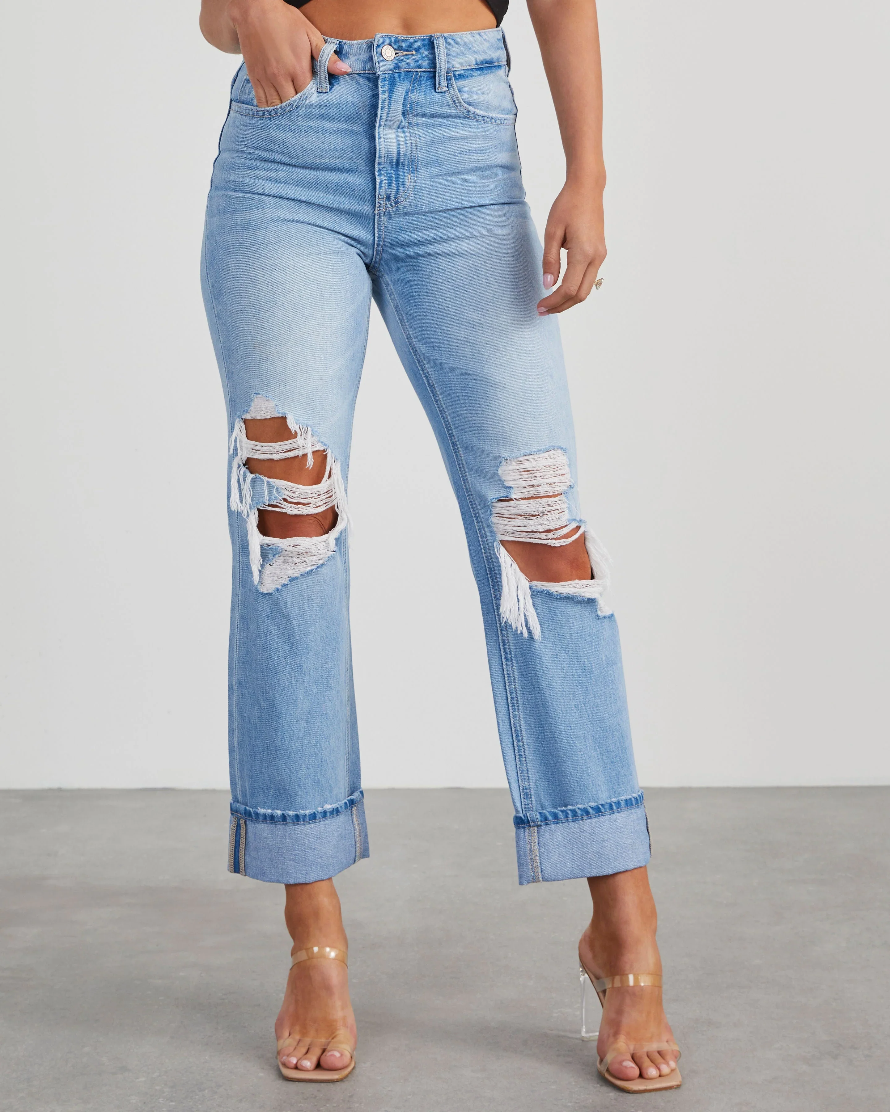 Nisha High Rise Distressed 90S Straight Leg Denim