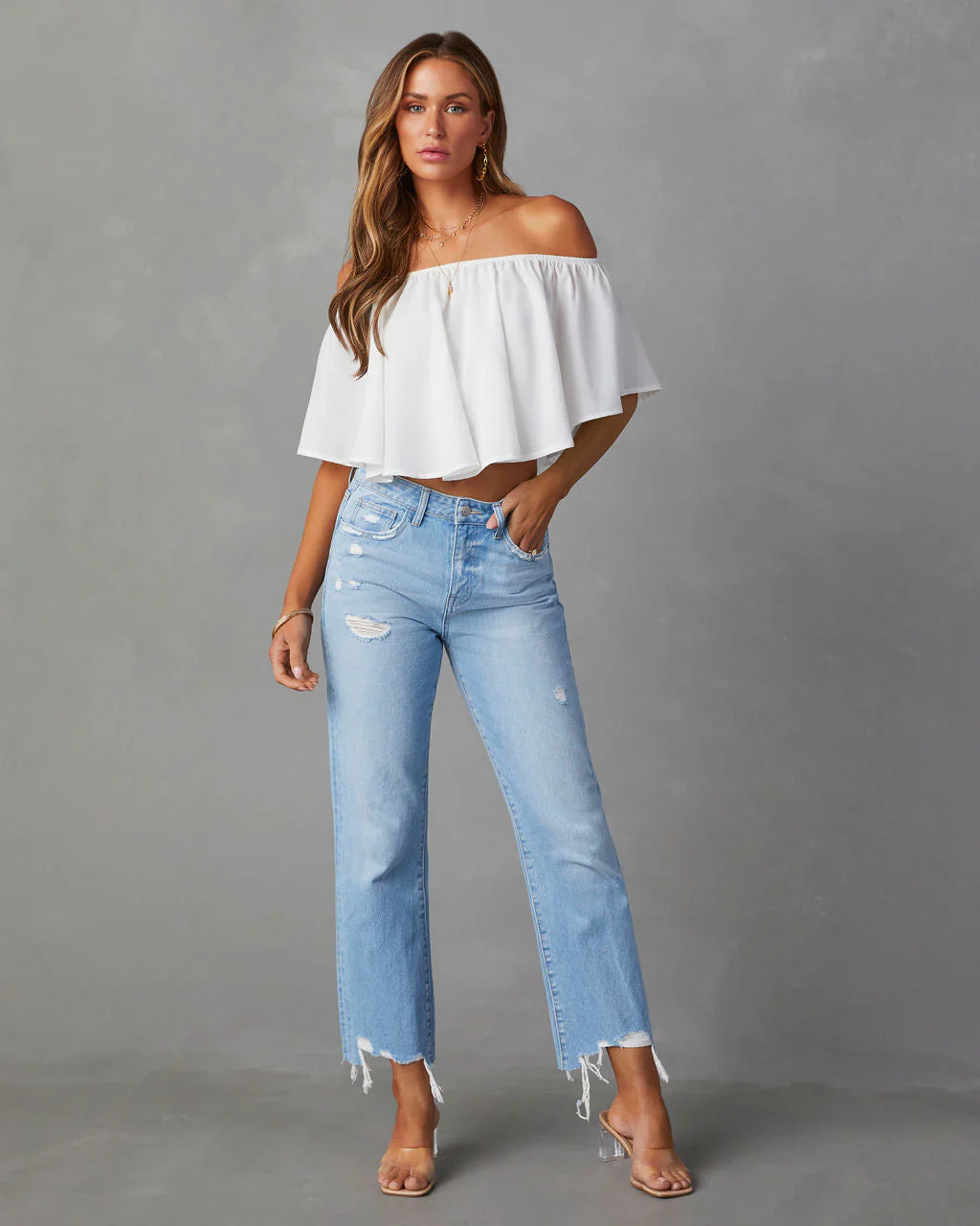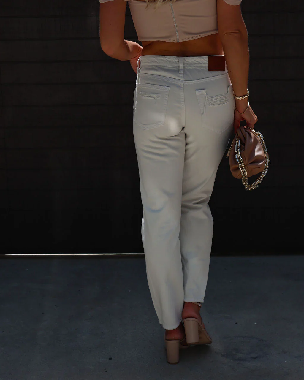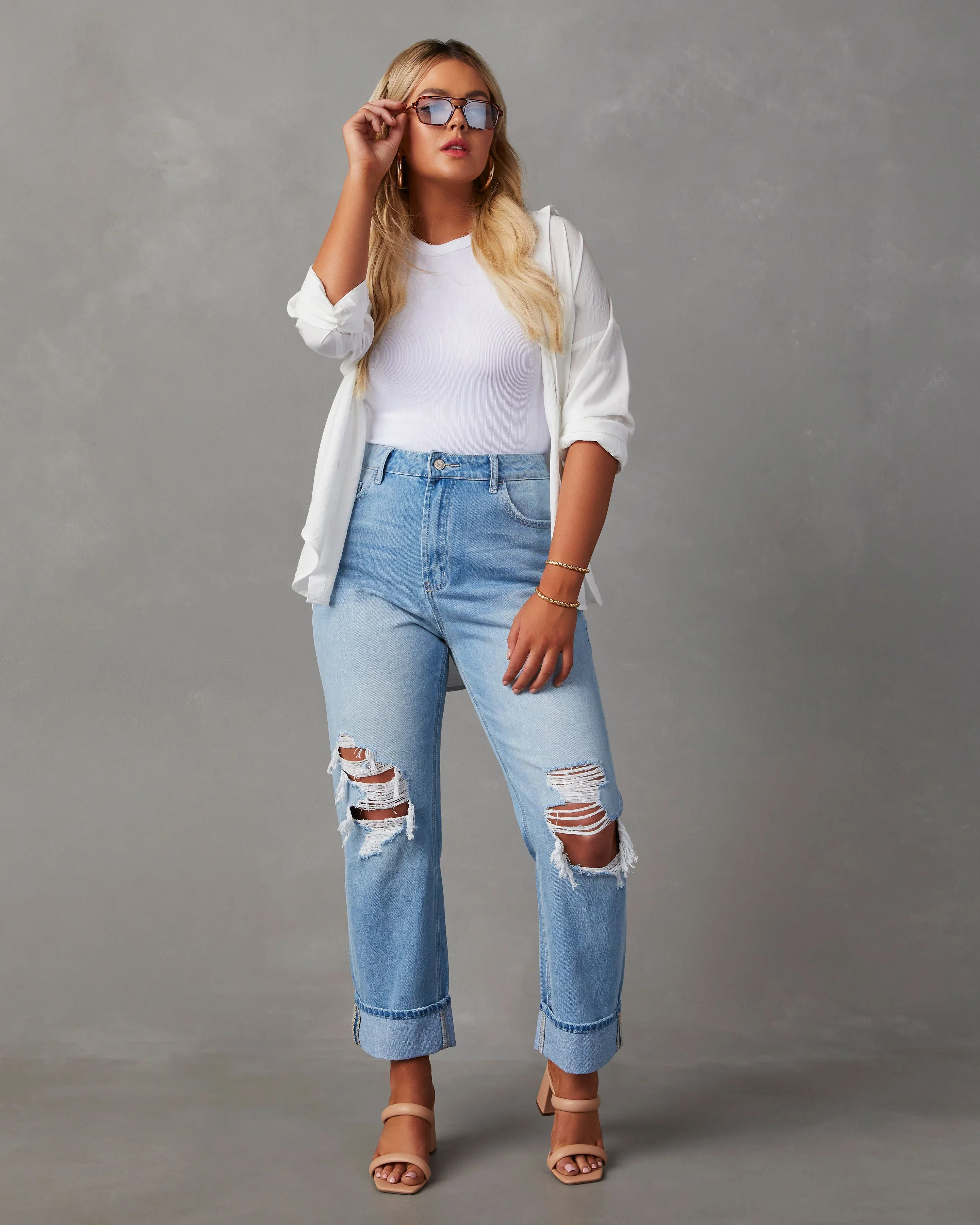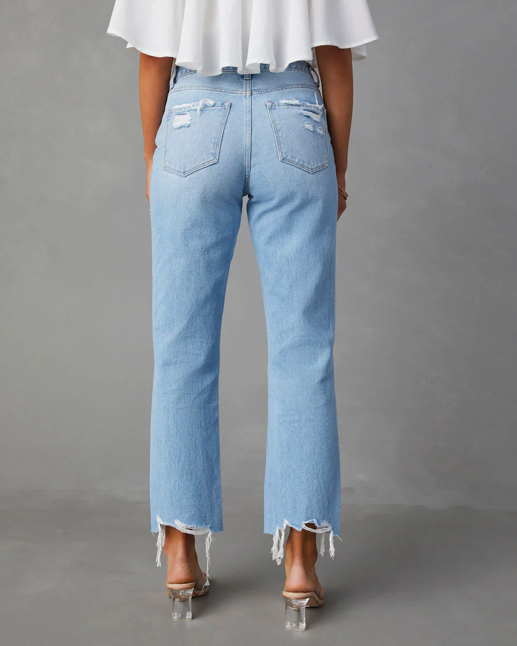 Nisha High Rise Distressed 90S Straight Leg Denim