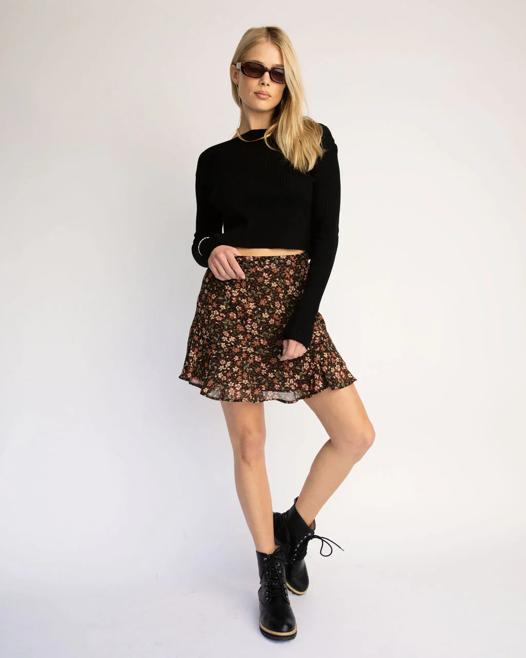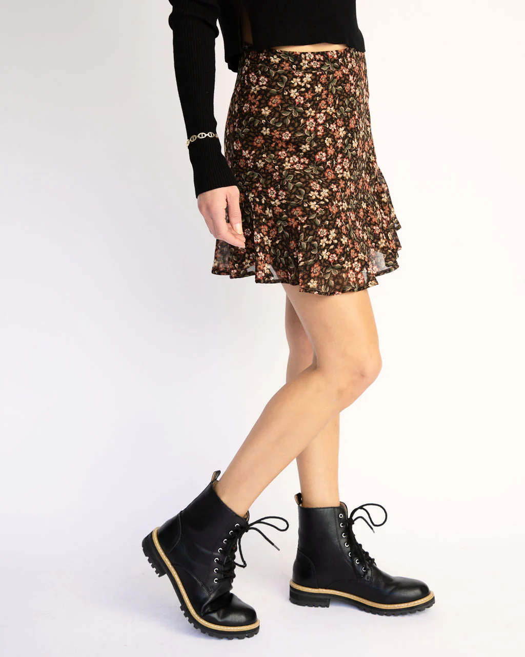 Slightly Amused Floral Ruffle Mini Skirt