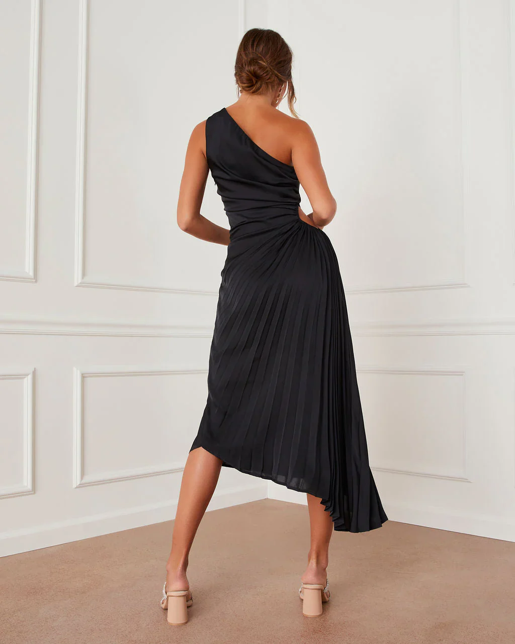 Dyanna Satin One Shoulder Drape Midi Dress
