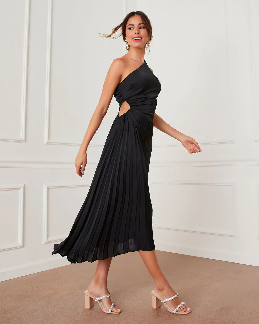 Coda Satin Side Pleated Cutout Midi Dress