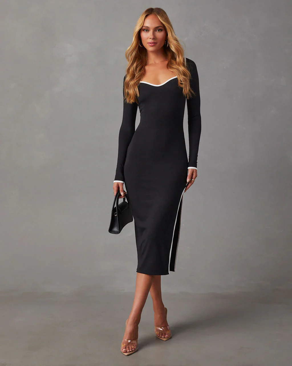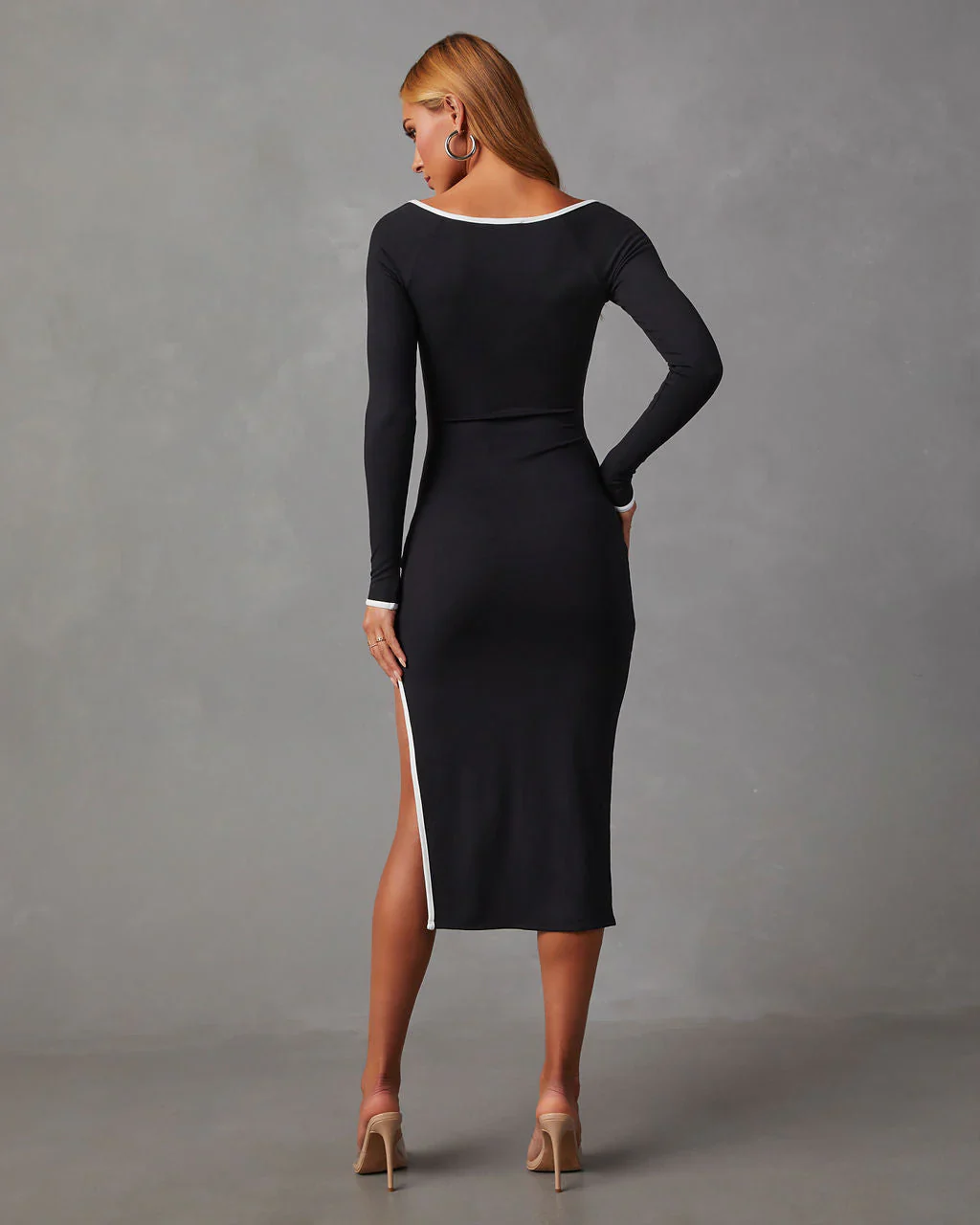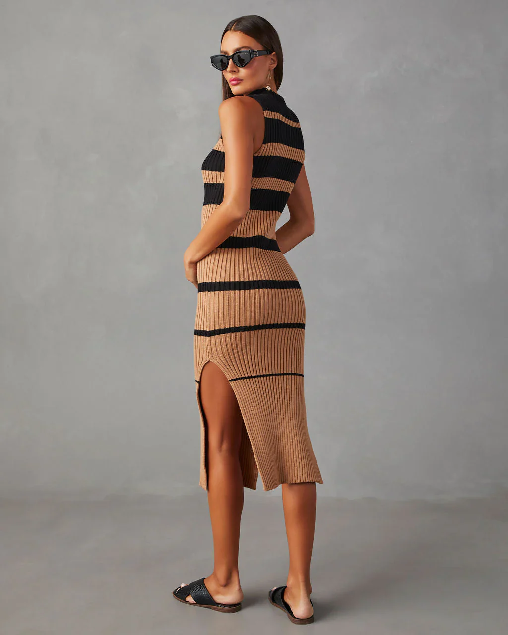 Constancia Ribbed Slit Midi Dress