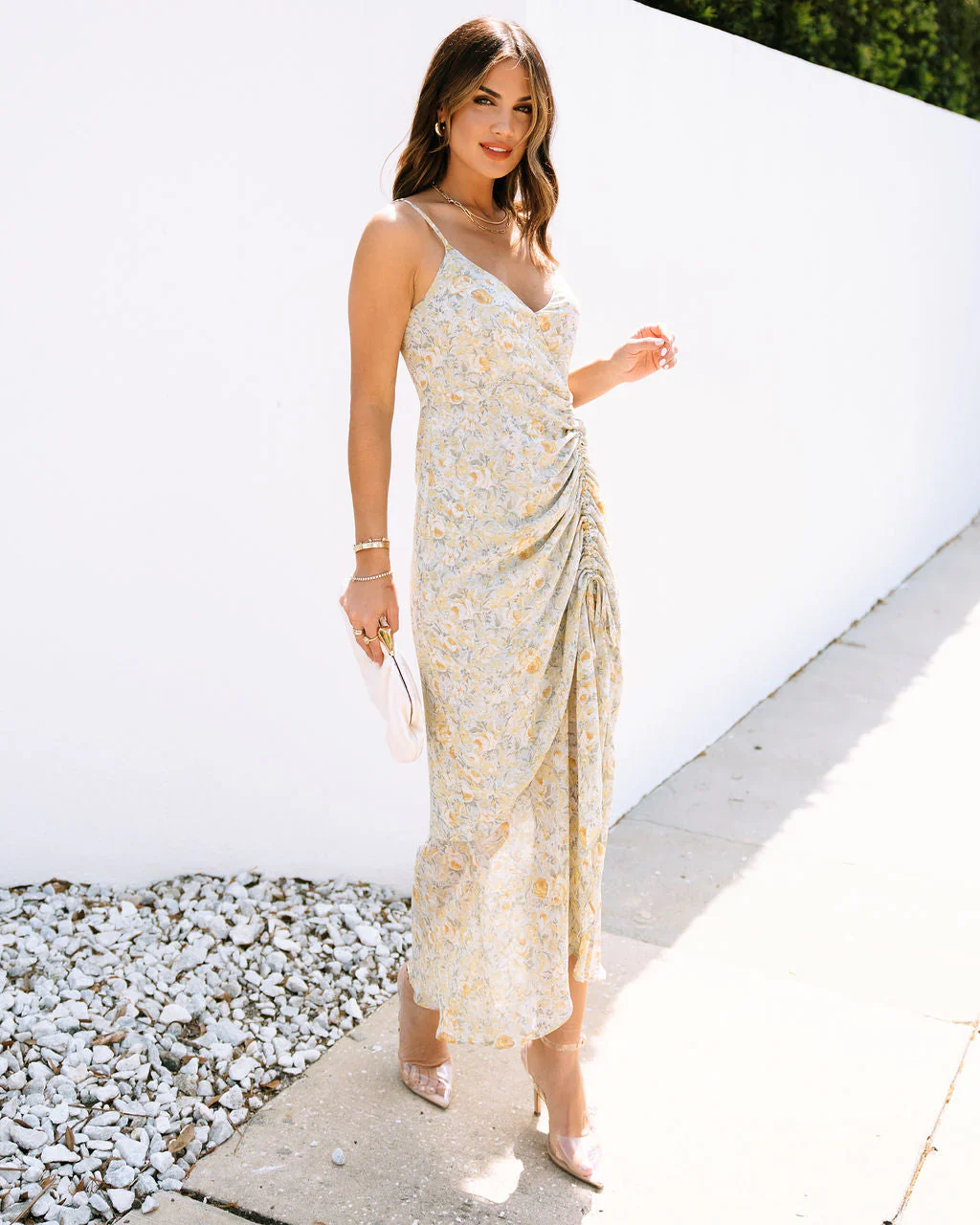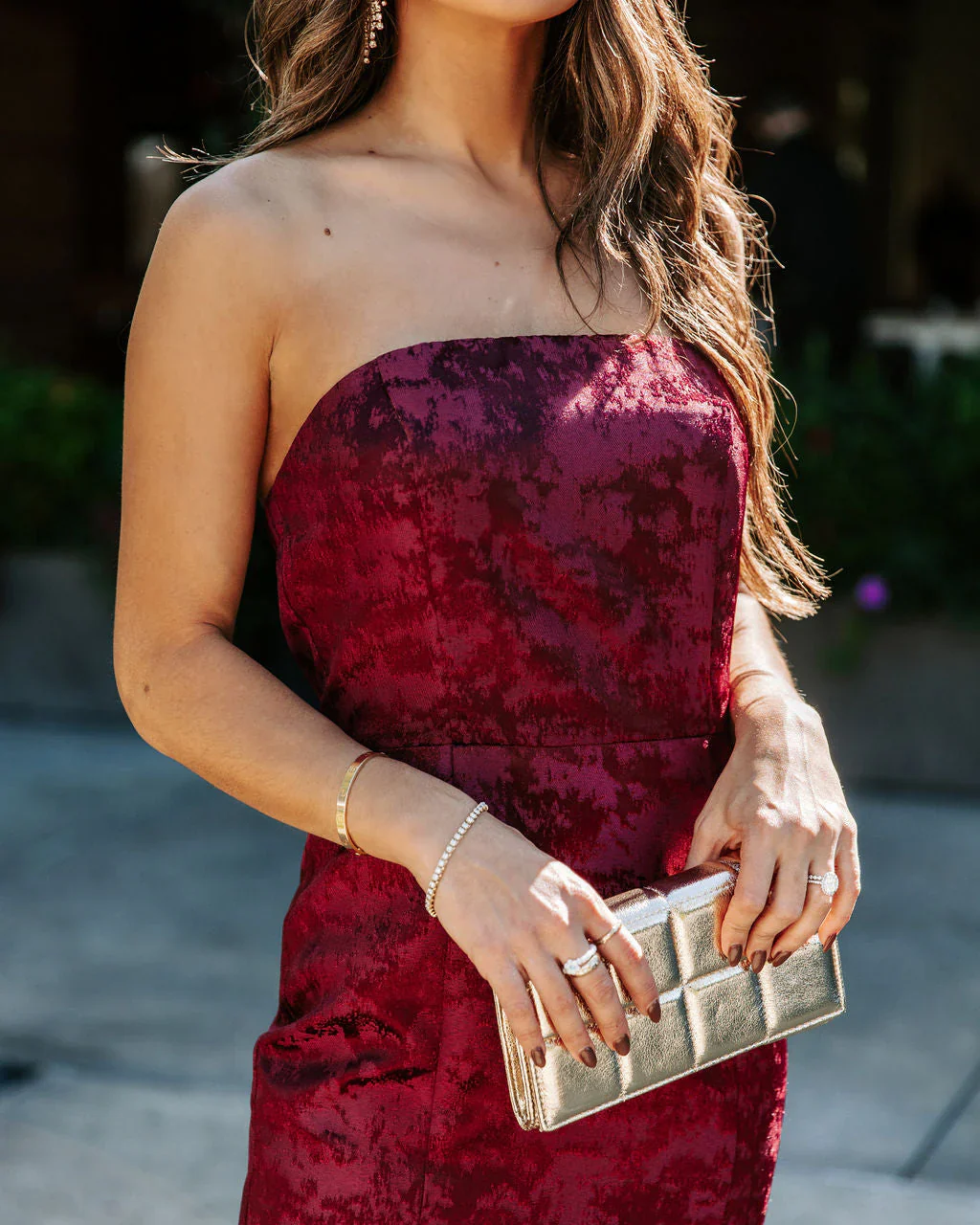 Elliana Strapless Embossed Ruffle Maxi Dress