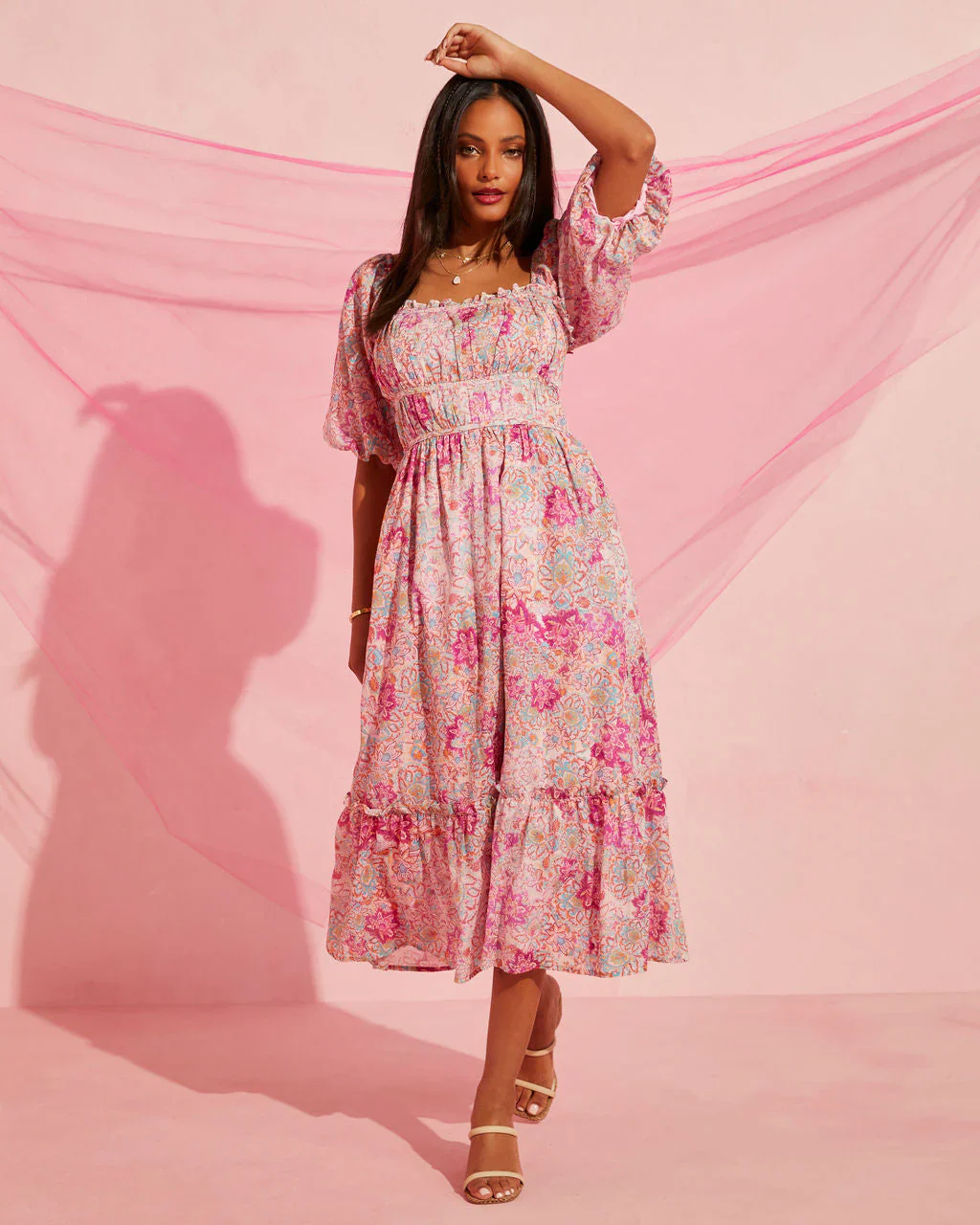 Girlfriends Pick Sweetheart Neck Midi Dress
