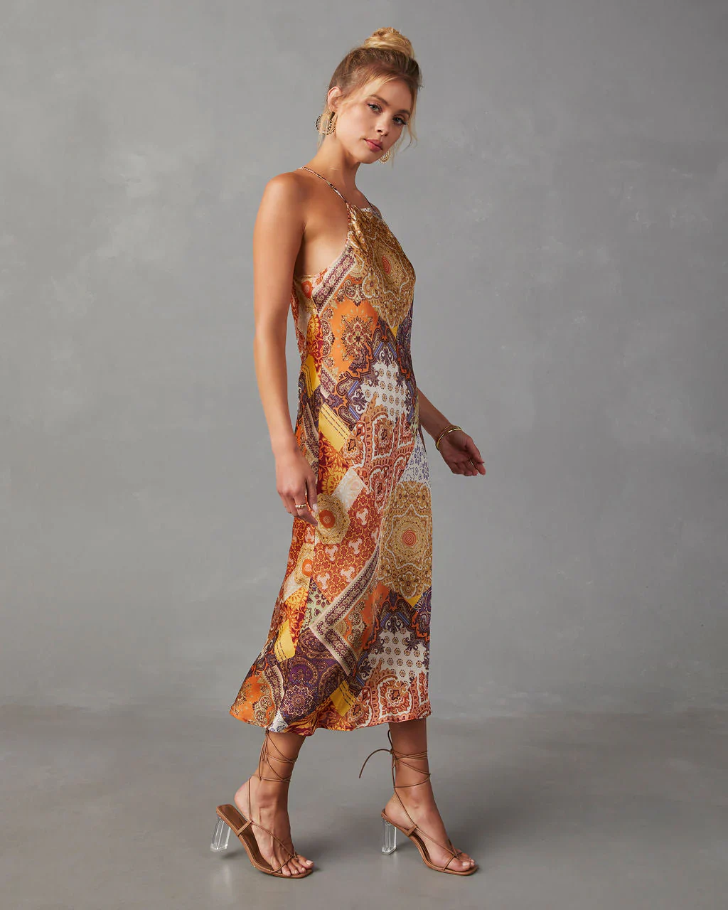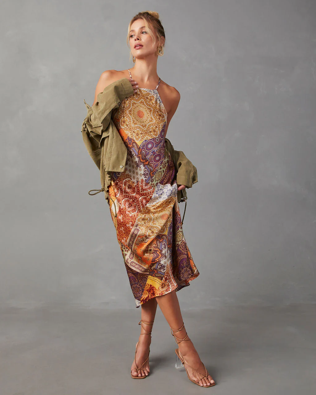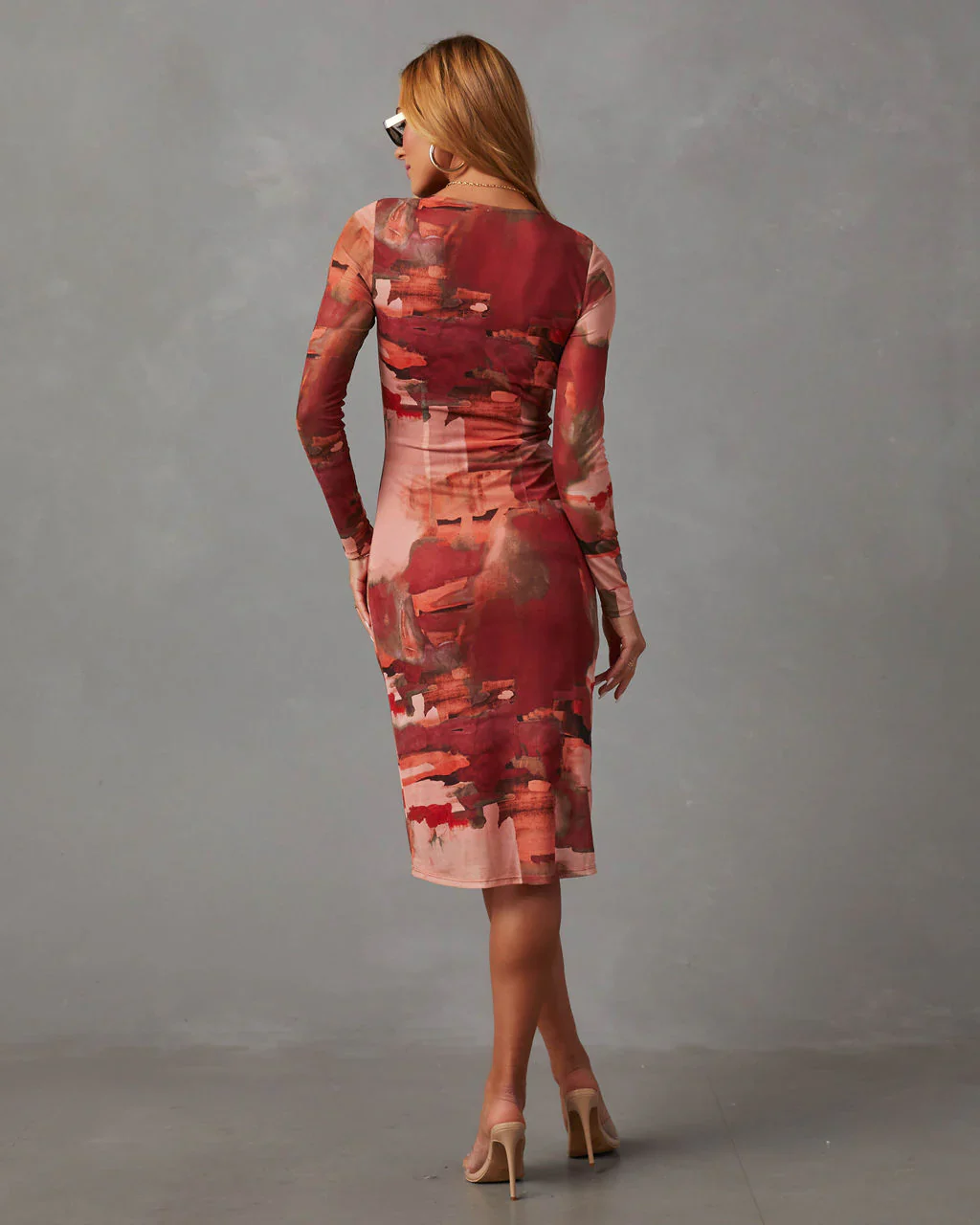 Fall Baecation Printed Long Sleeve Mesh Midi Dress