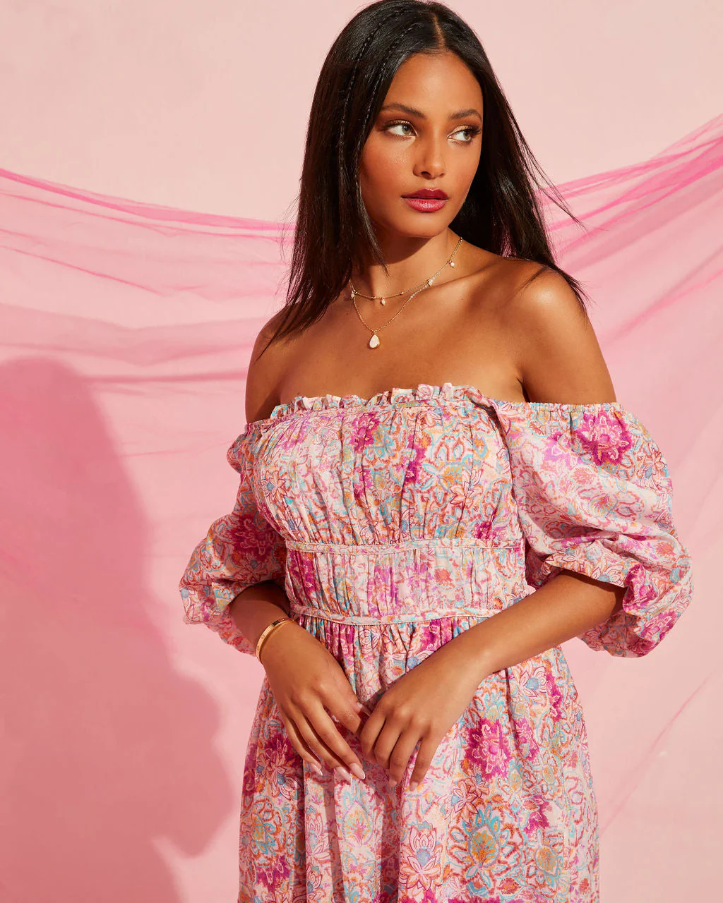 Francisca Cotton Eyelet Off The Shoulder Midi Dress