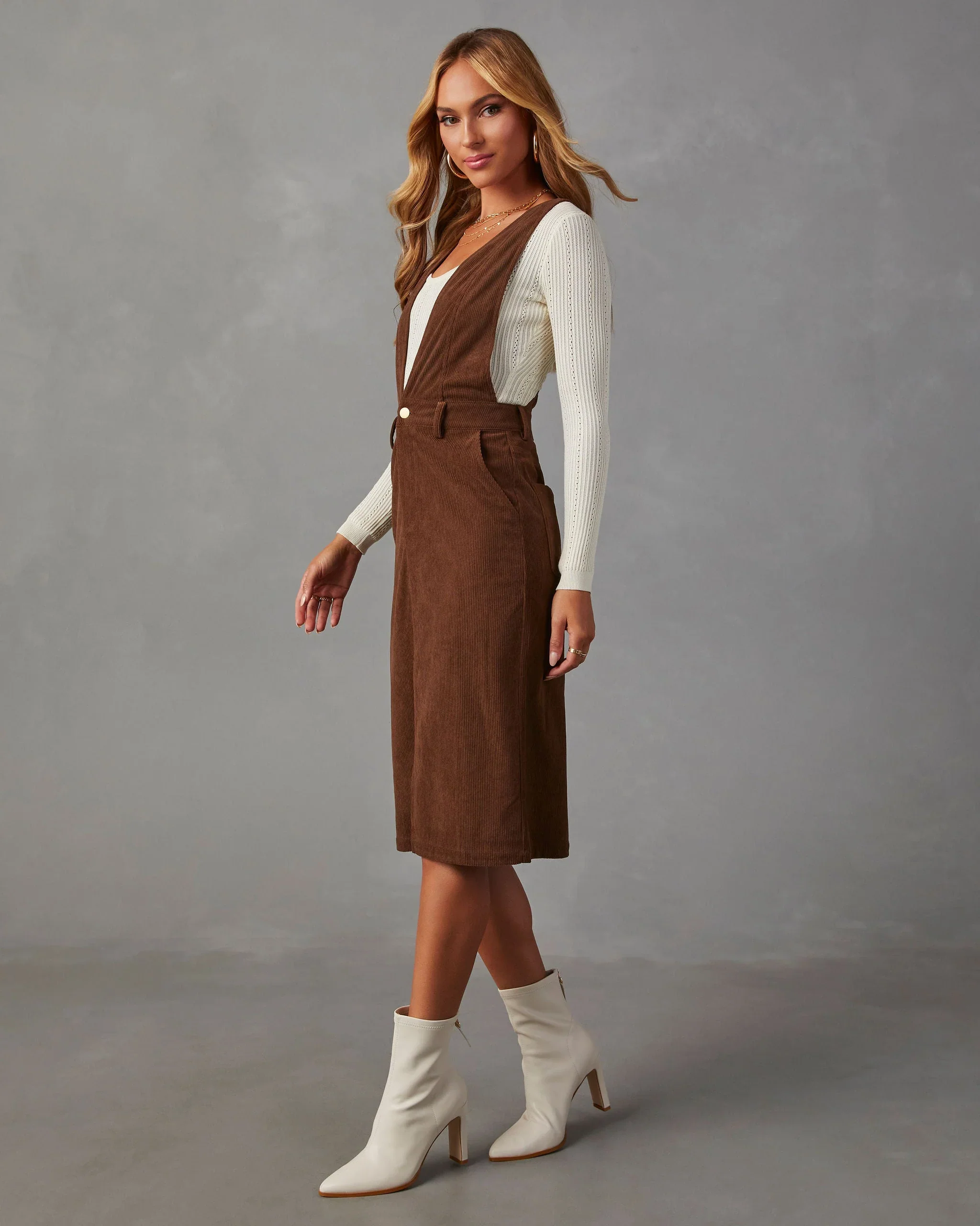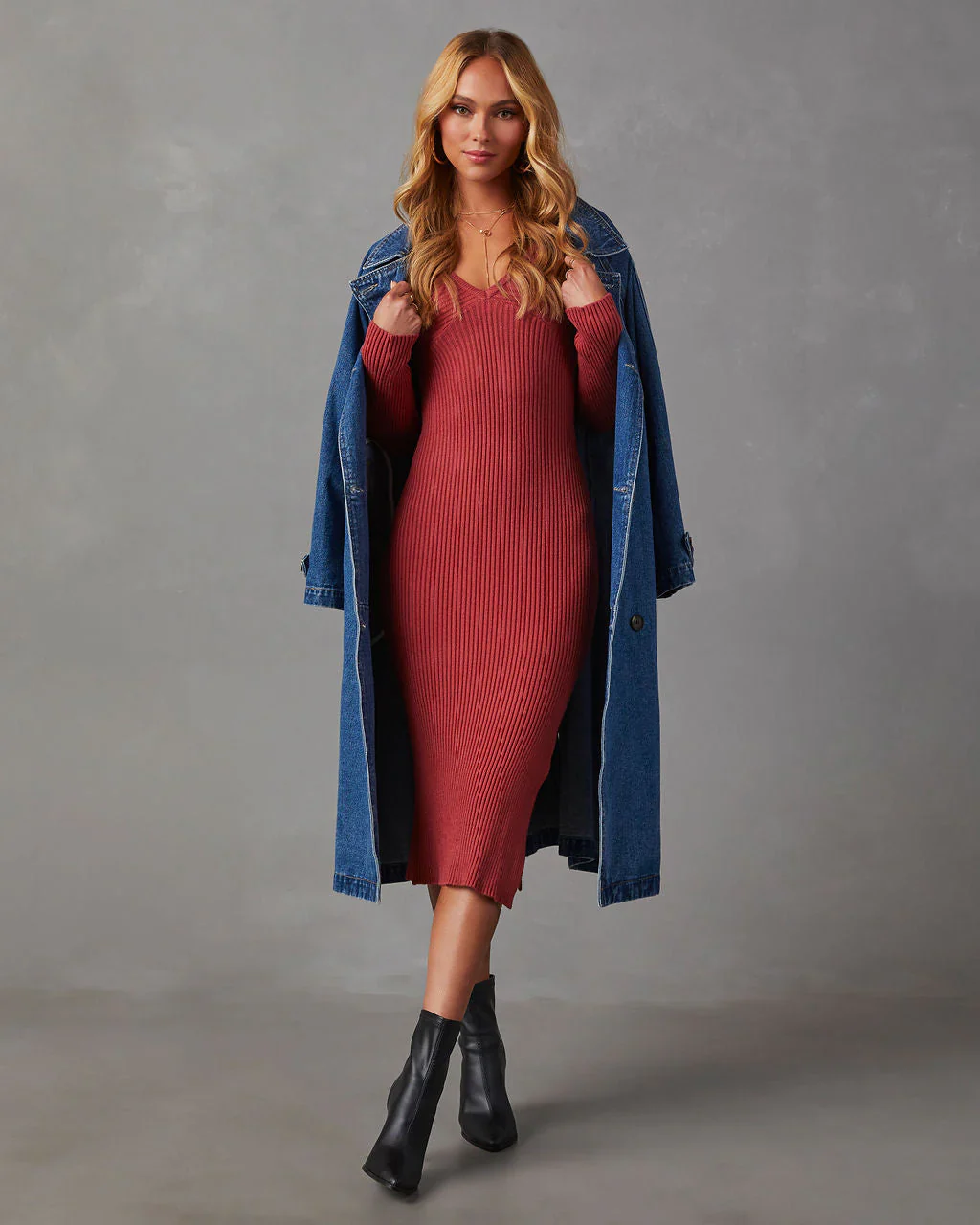 Fireside Romance Ribbed V-Neck Sweater Dress