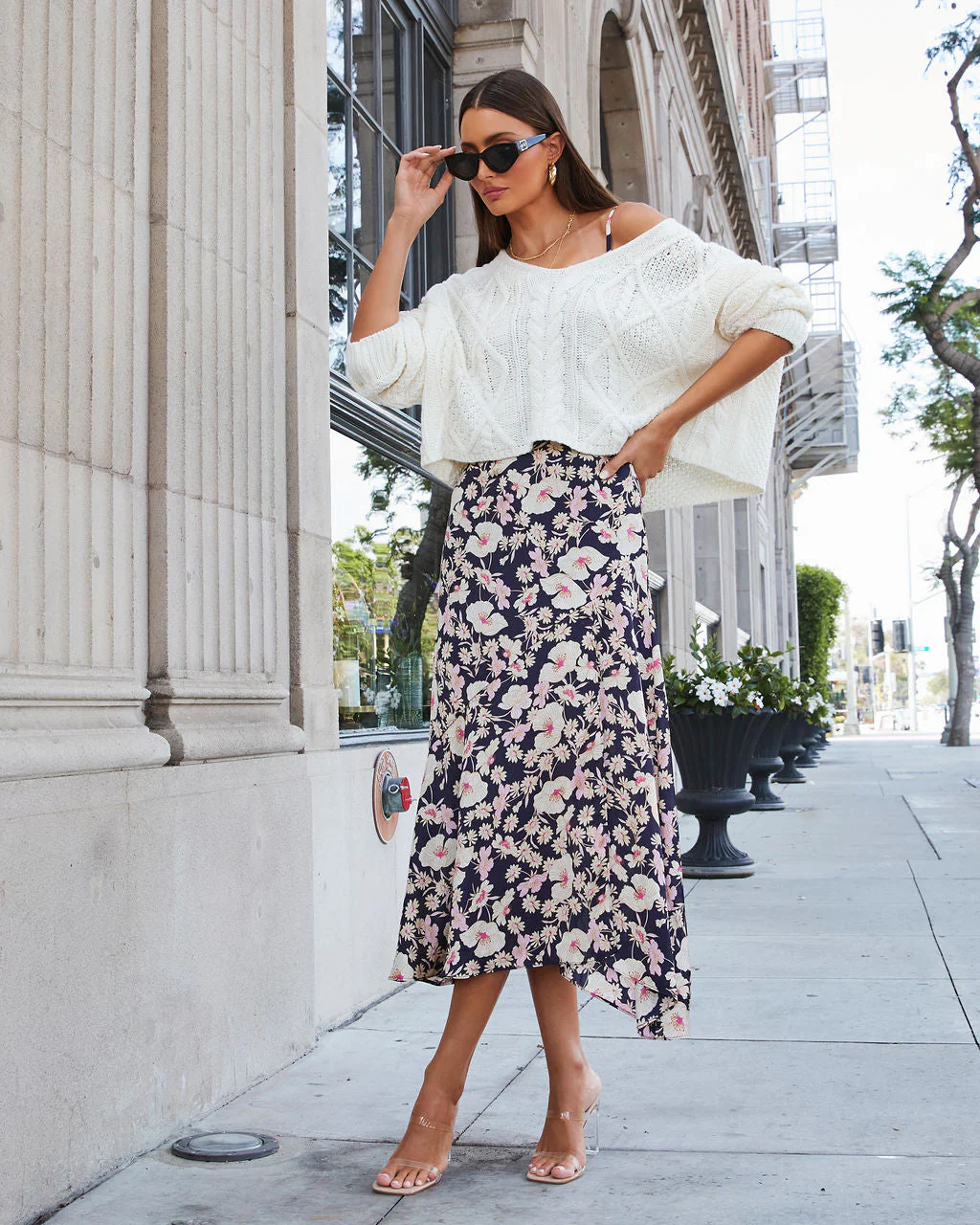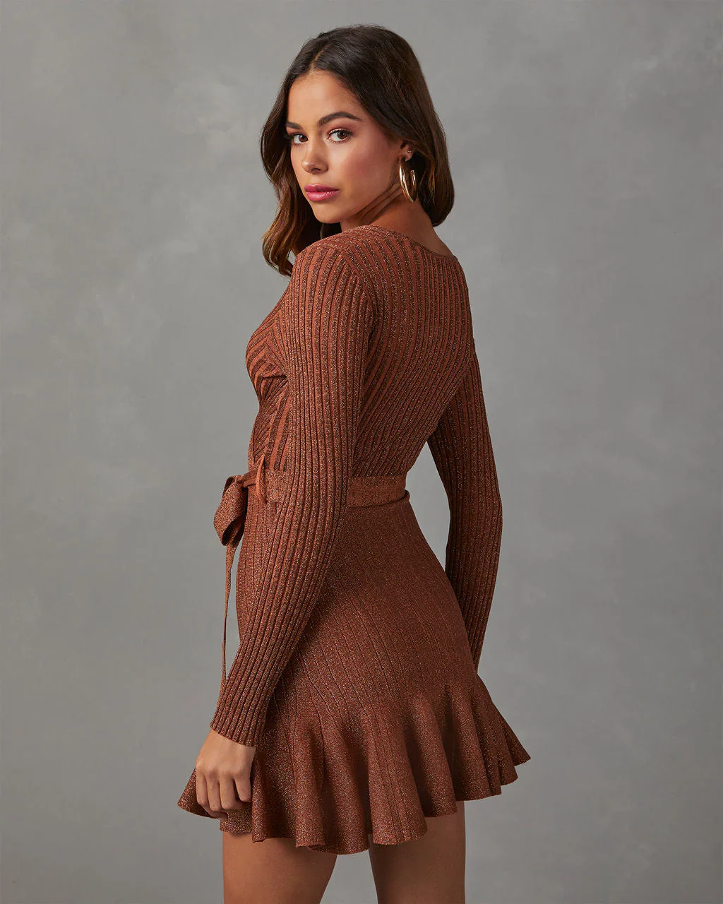 Jodie Ruffle Hem Surplice Midi Sweater Dress