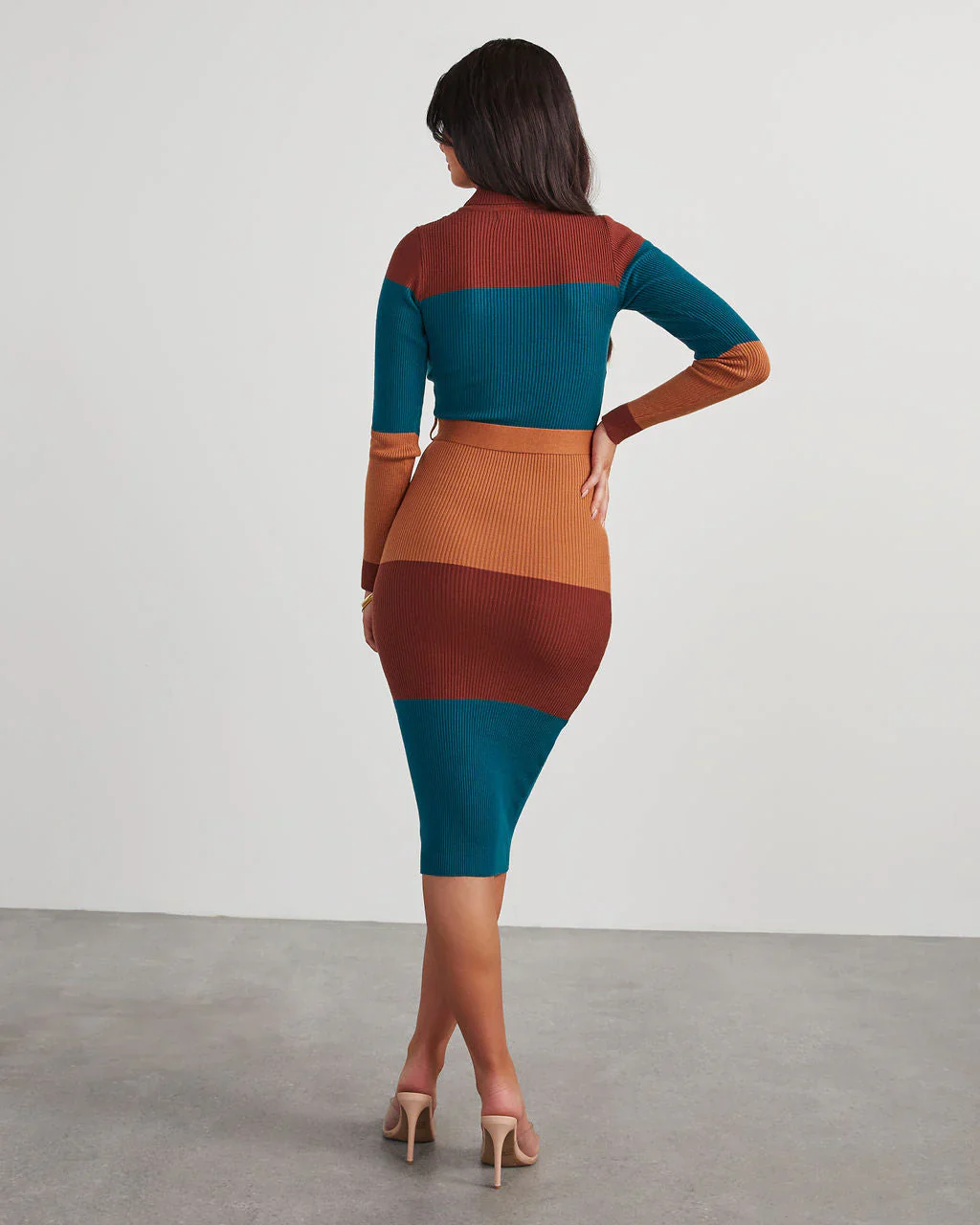 Hit The City Striped Tie Waist Midi Sweater Dress
