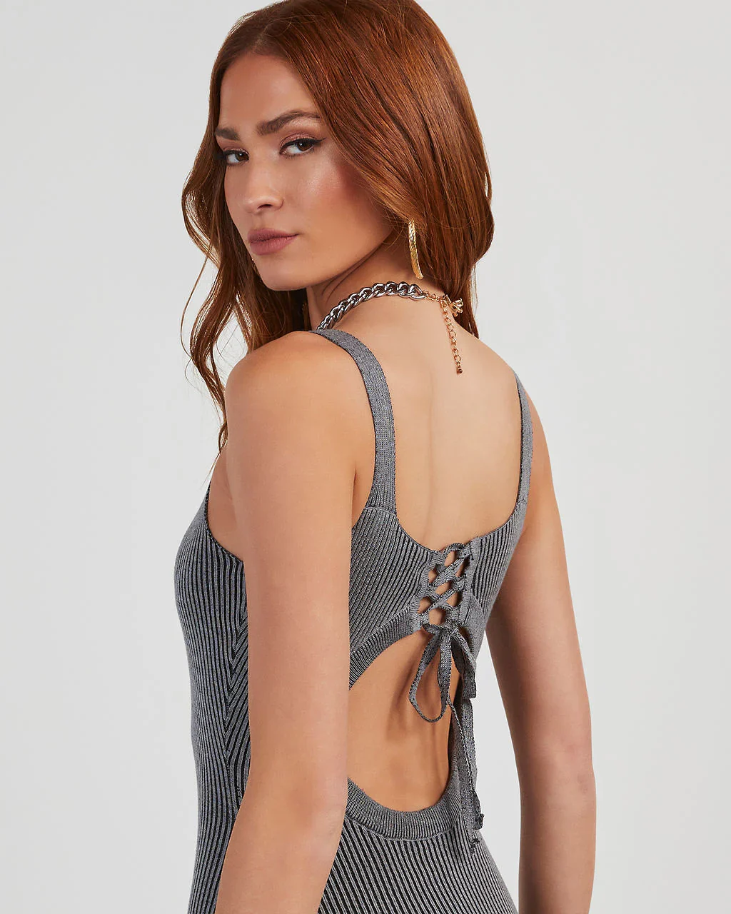 Modern Day Jackie Ribbed Cutout Strapless Midi Dress