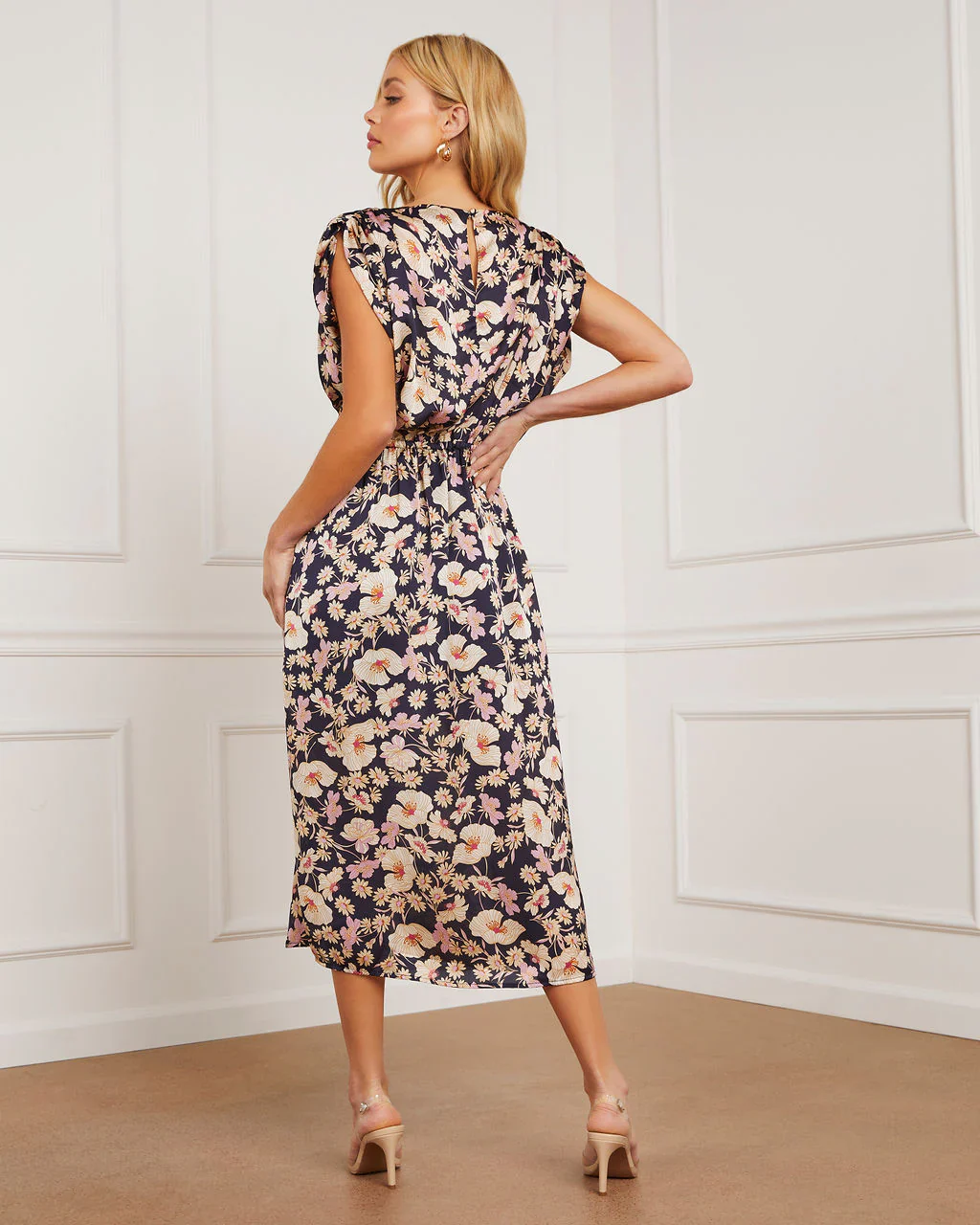 Juliana Satin Cowl Neck Ruched Asymmetrical Maxi Dress