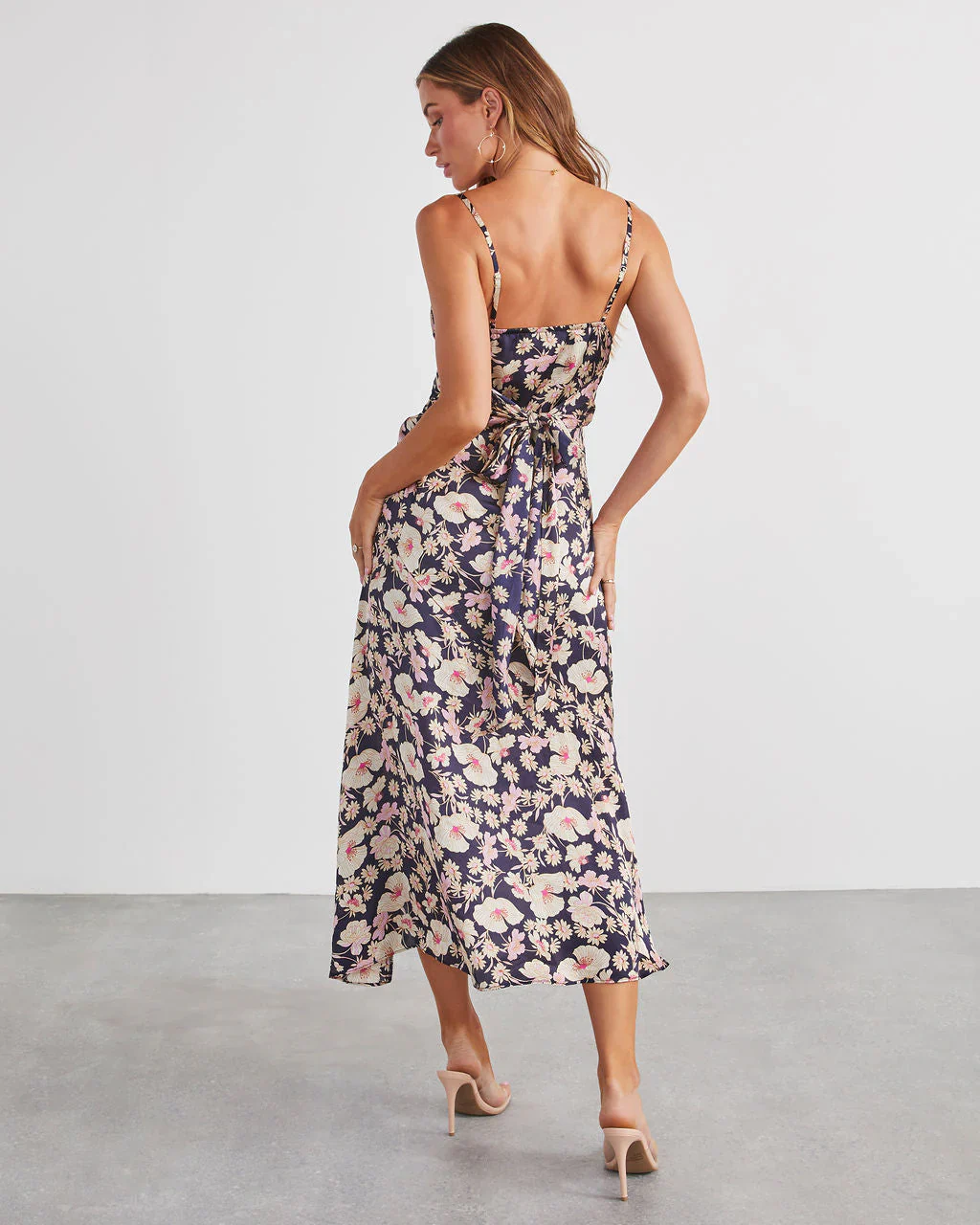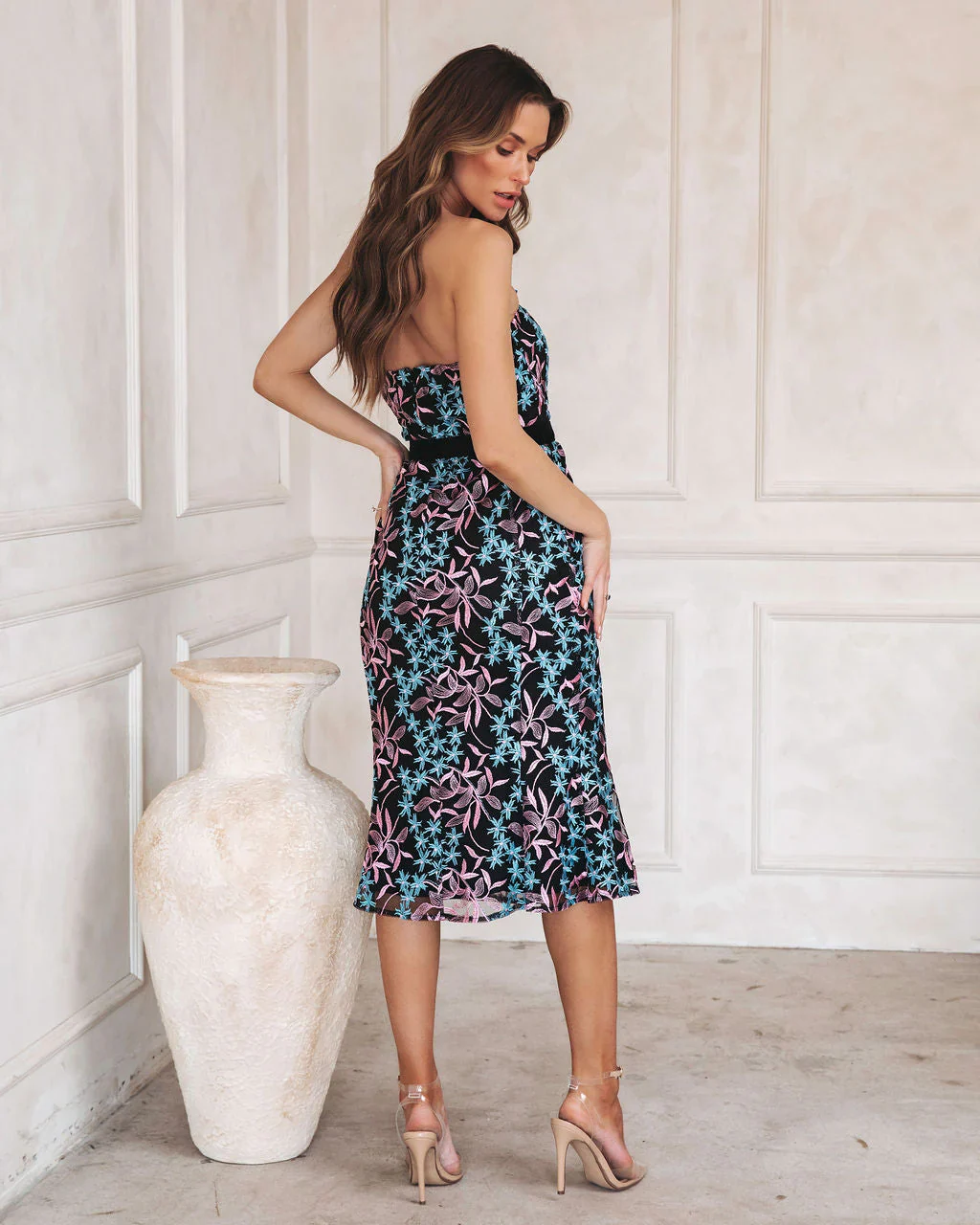 Midnight Paradise Strapless Floral Embroidered Midi Dress