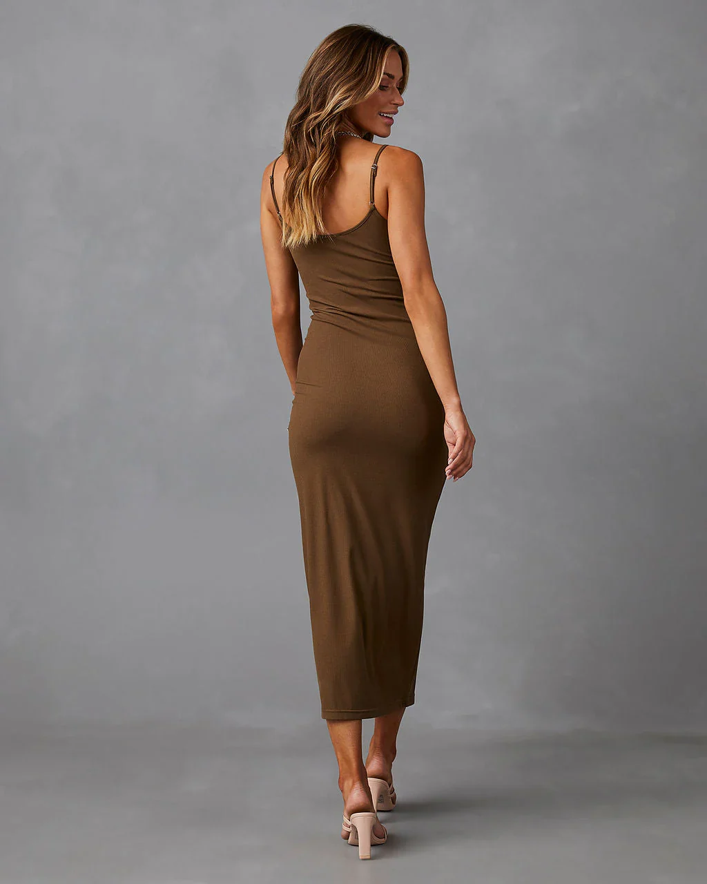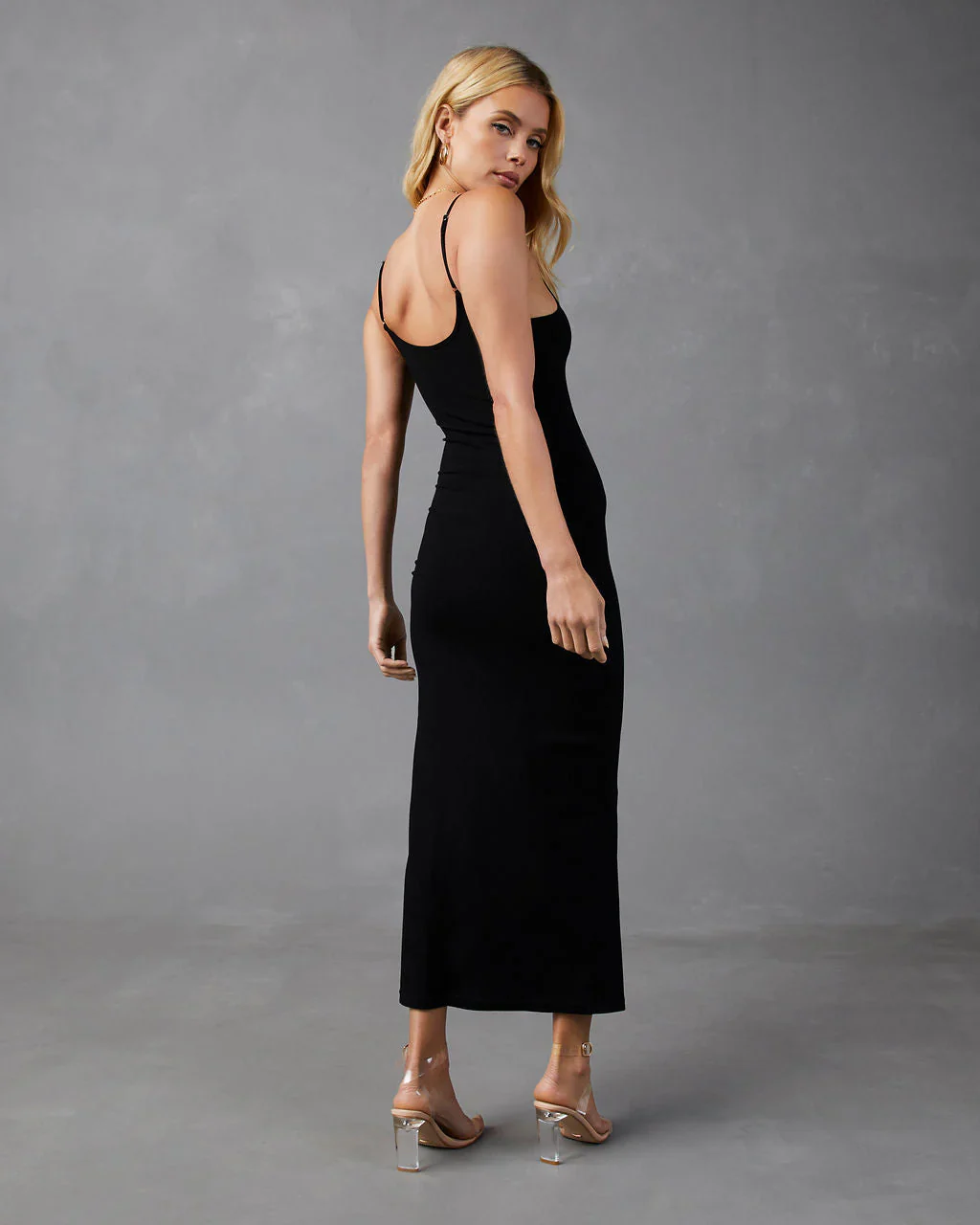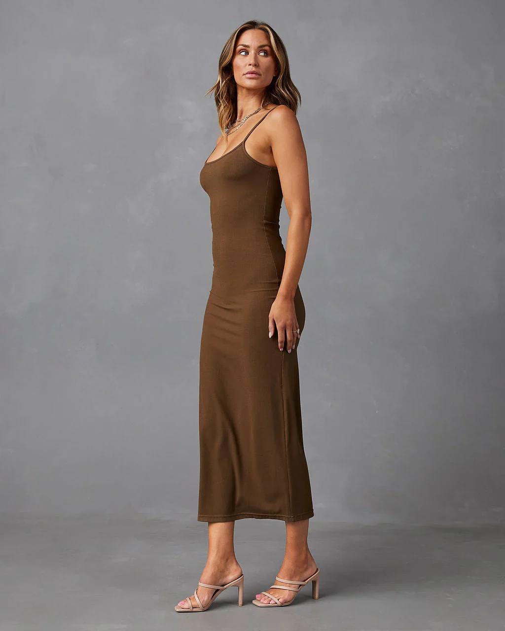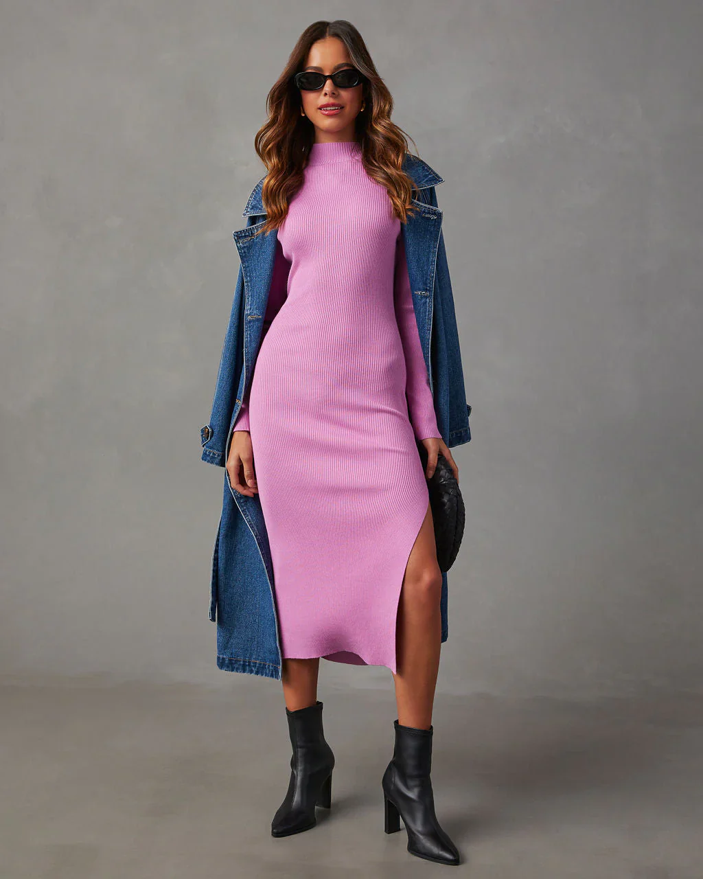Hold That Thought Ribbed Mock Neck Midi Dress
