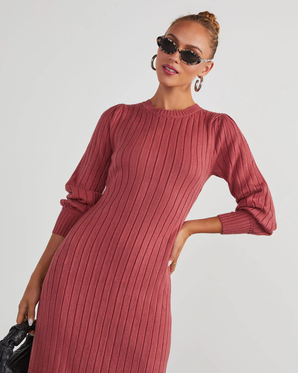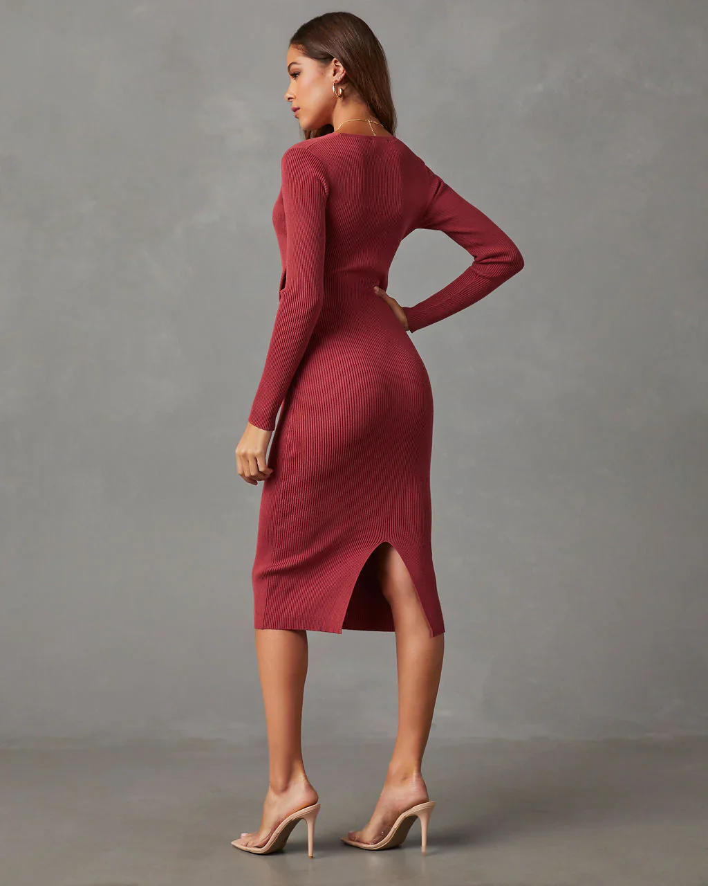 Marleigh Ribbed Knit Bodycon Midi Dress
