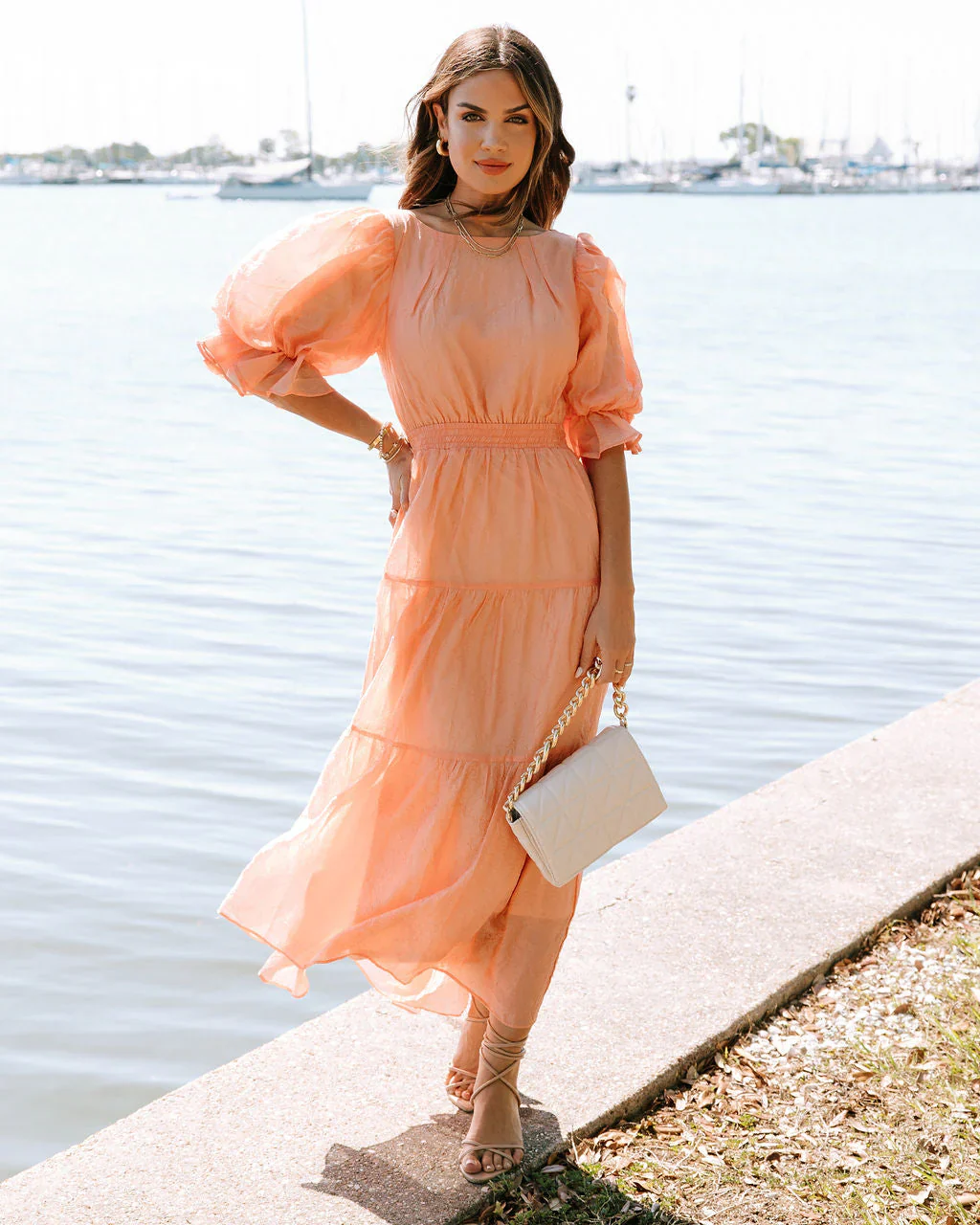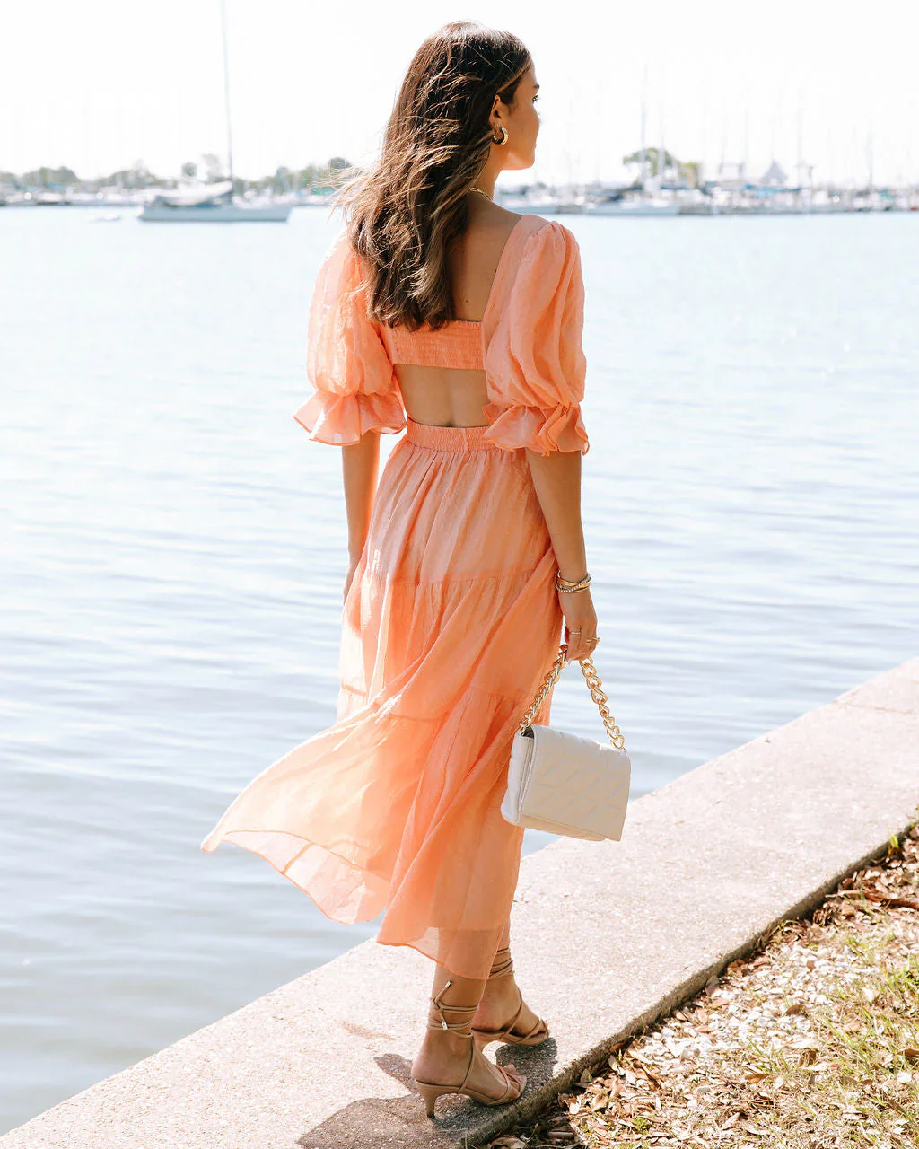 Martina Crinkle Tiered Puff Sleeve Open Back Midi Dress