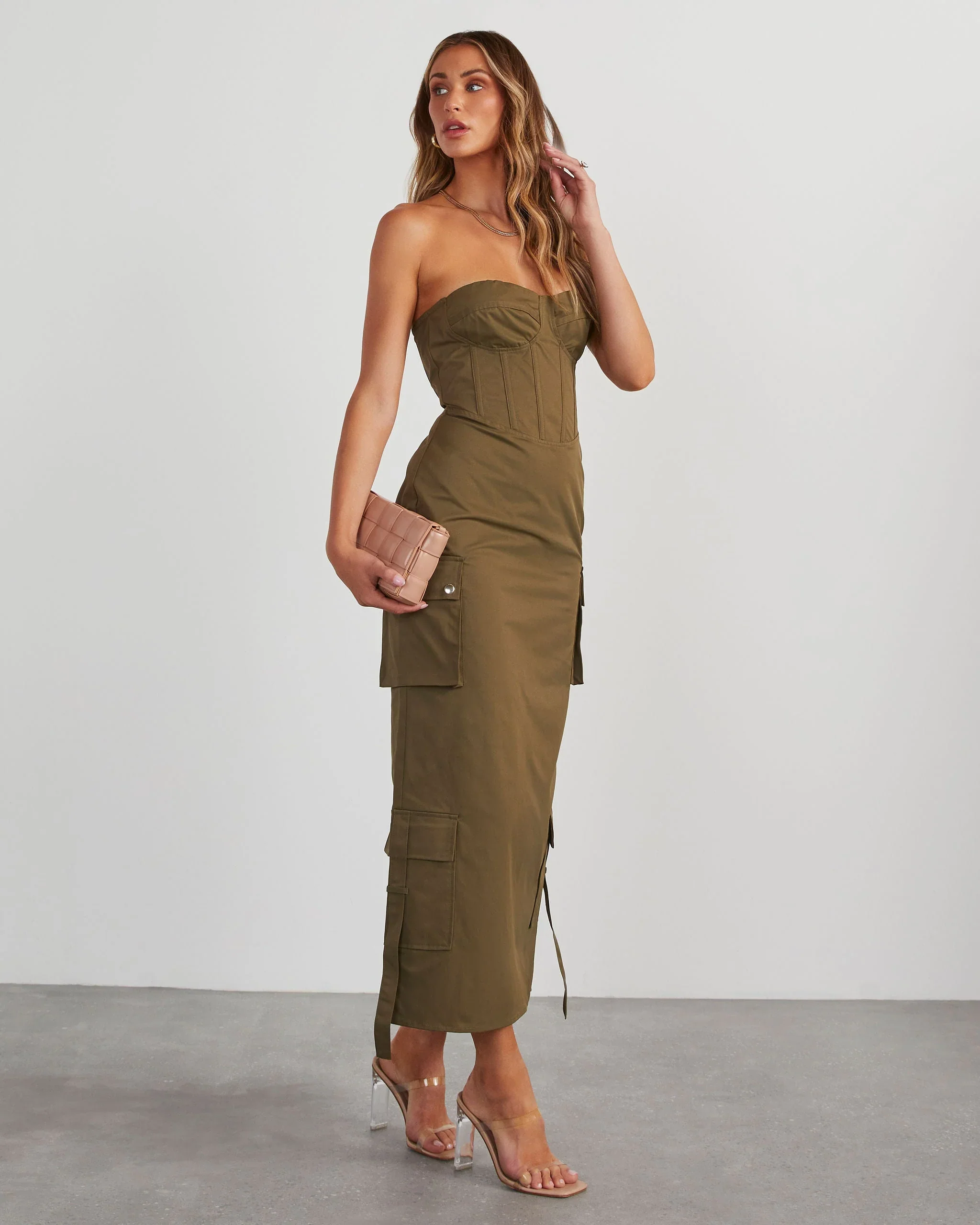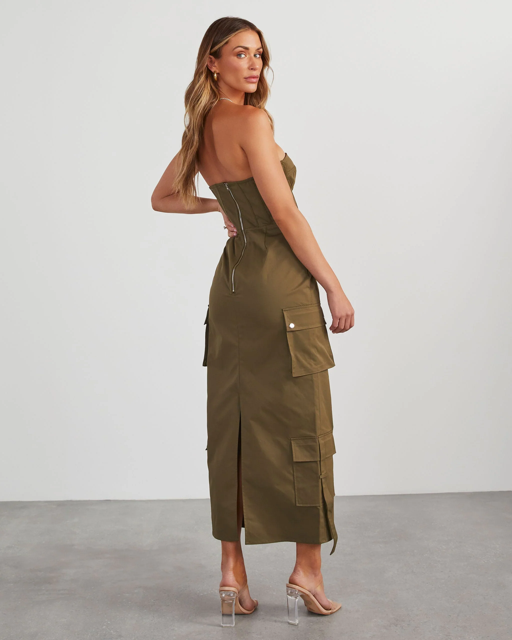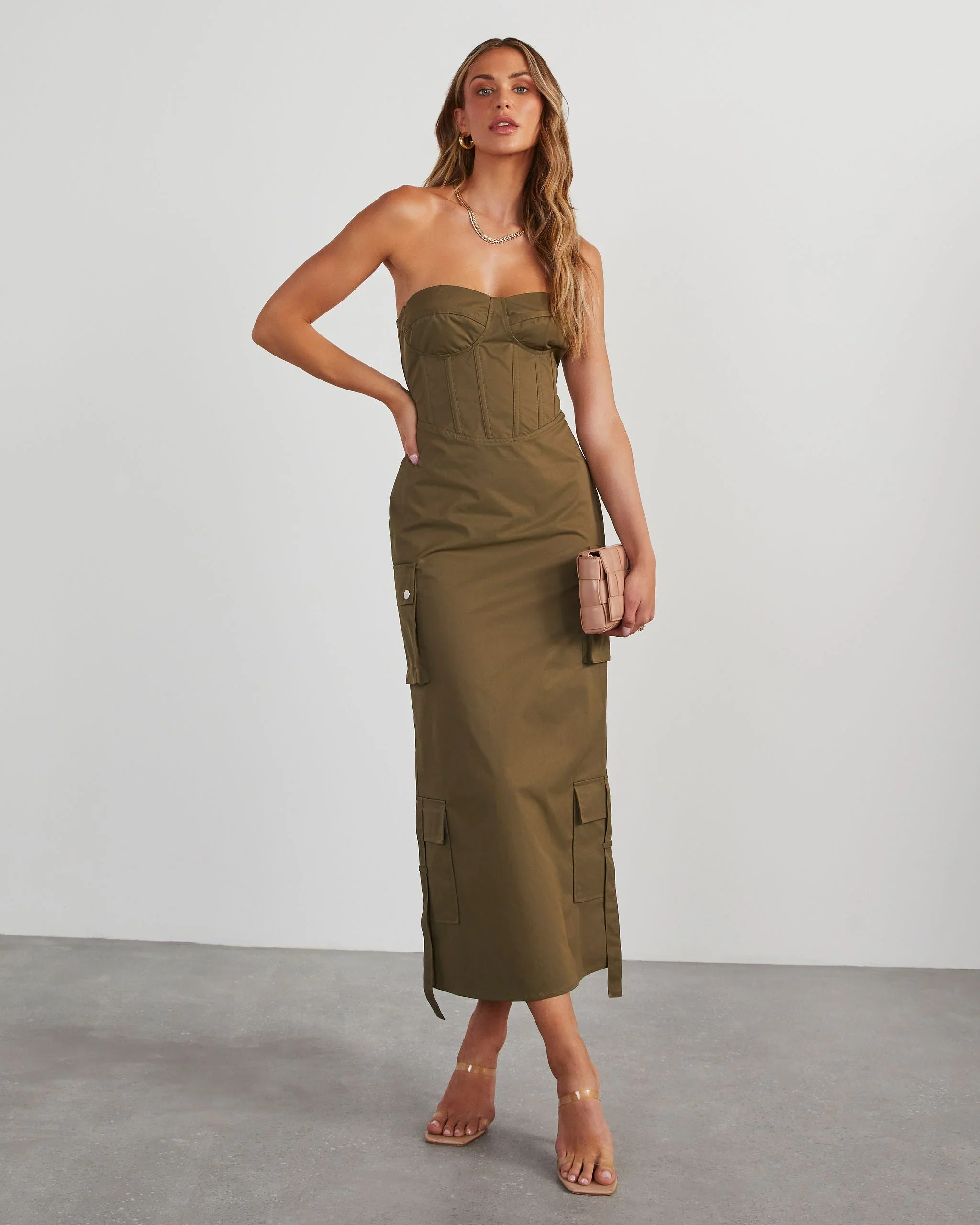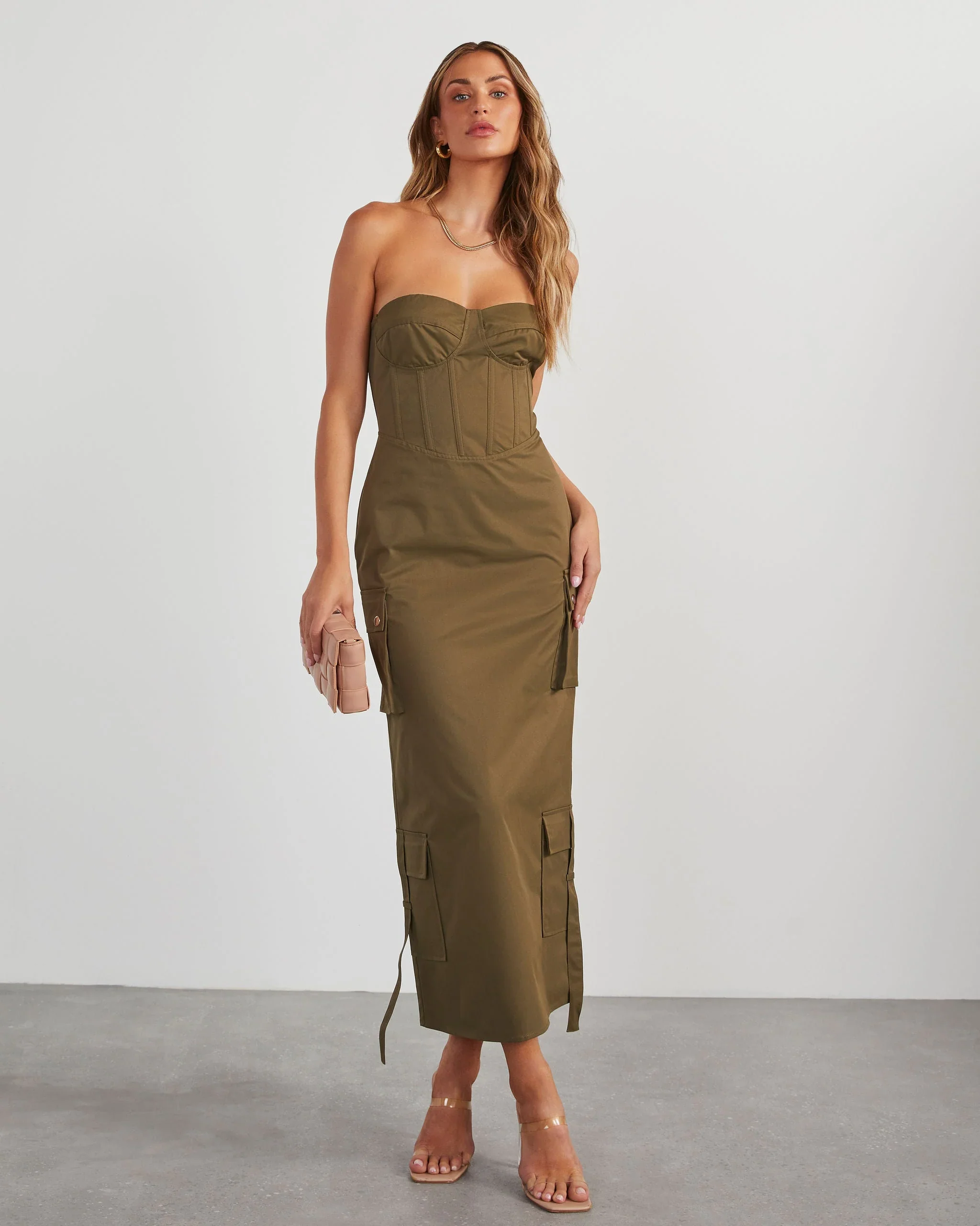 Sodaro Strapless Cargo Midi Dress