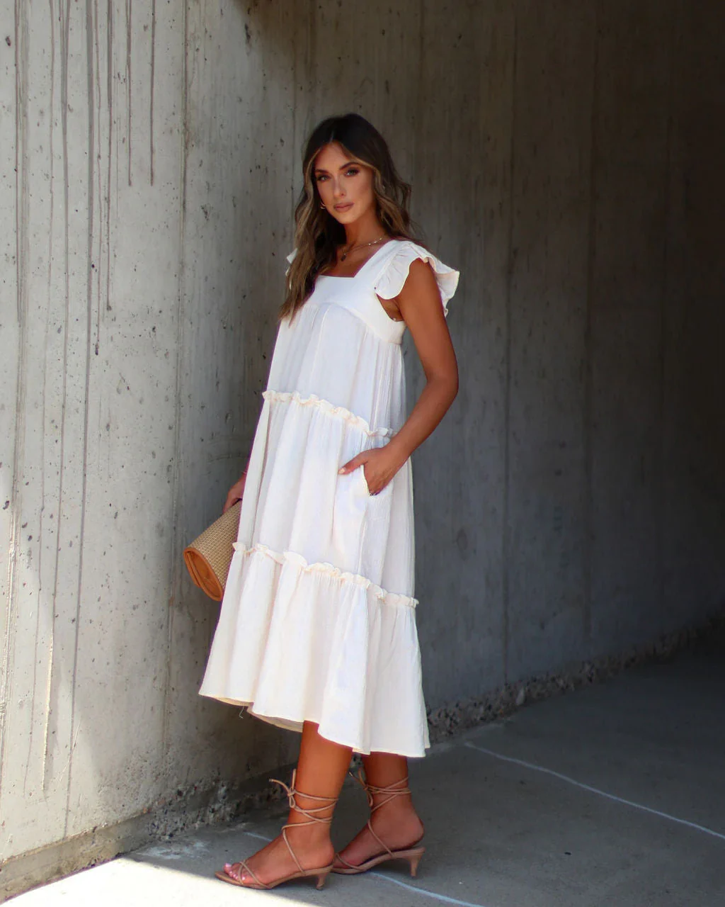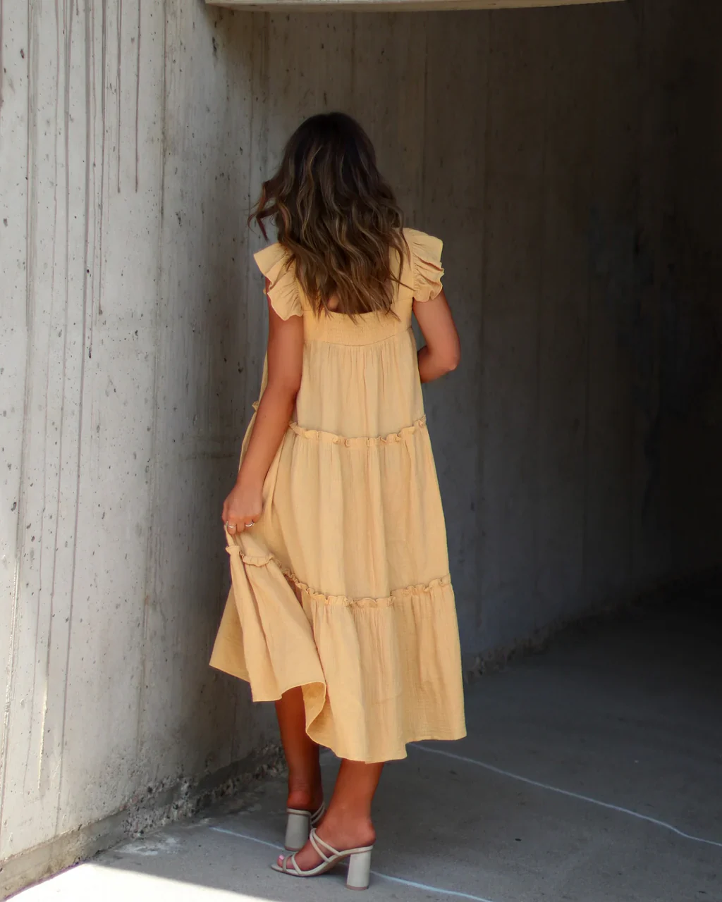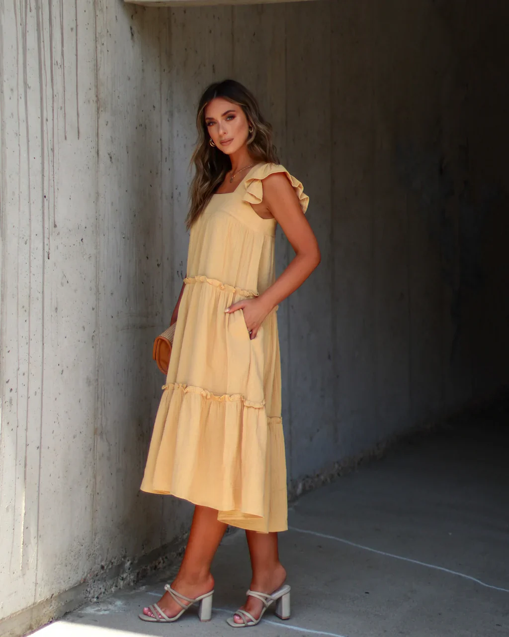 Mavien Ruffle Tiered Midi Dress