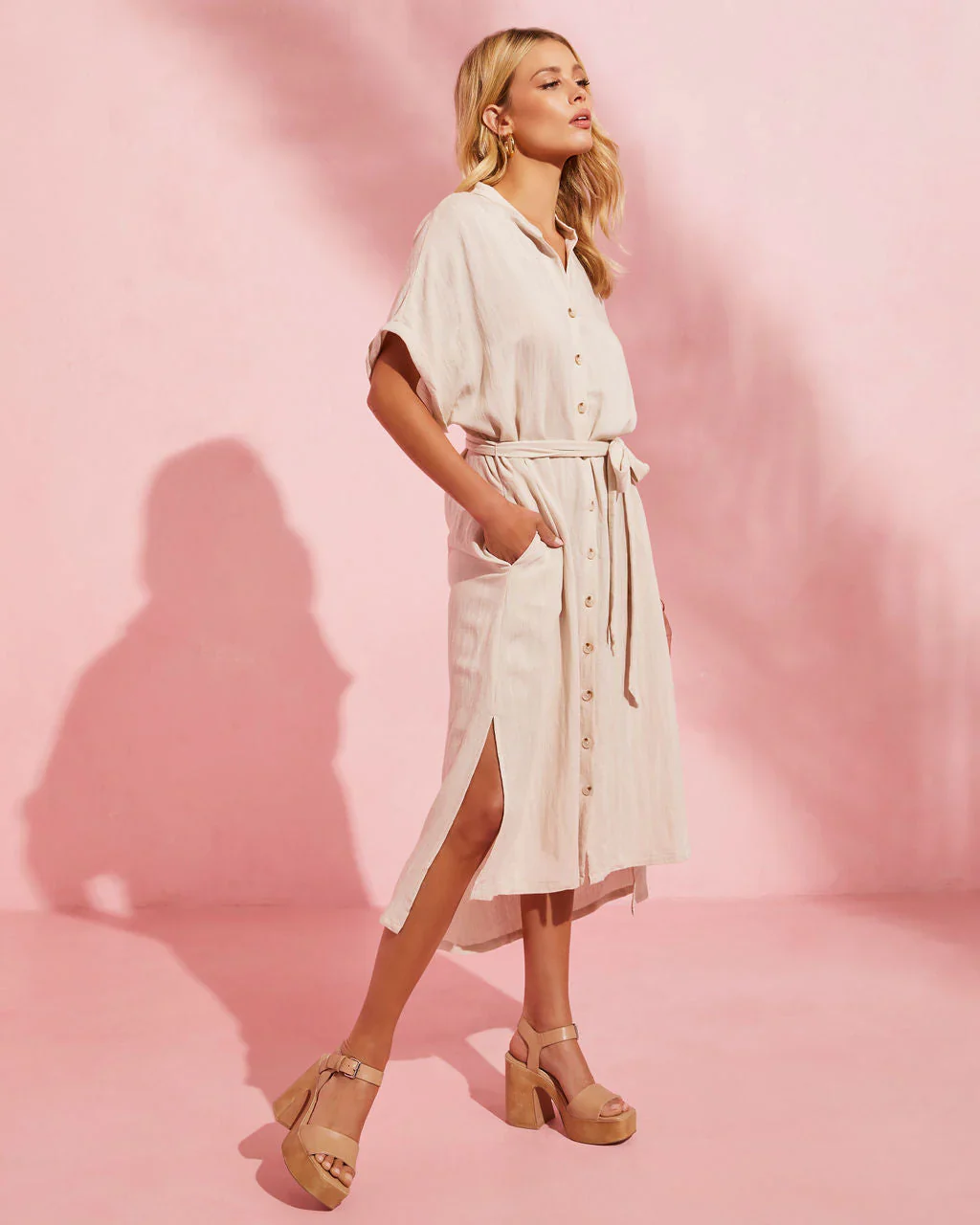 Serengeti Tie Waist Button Front Midi Dress