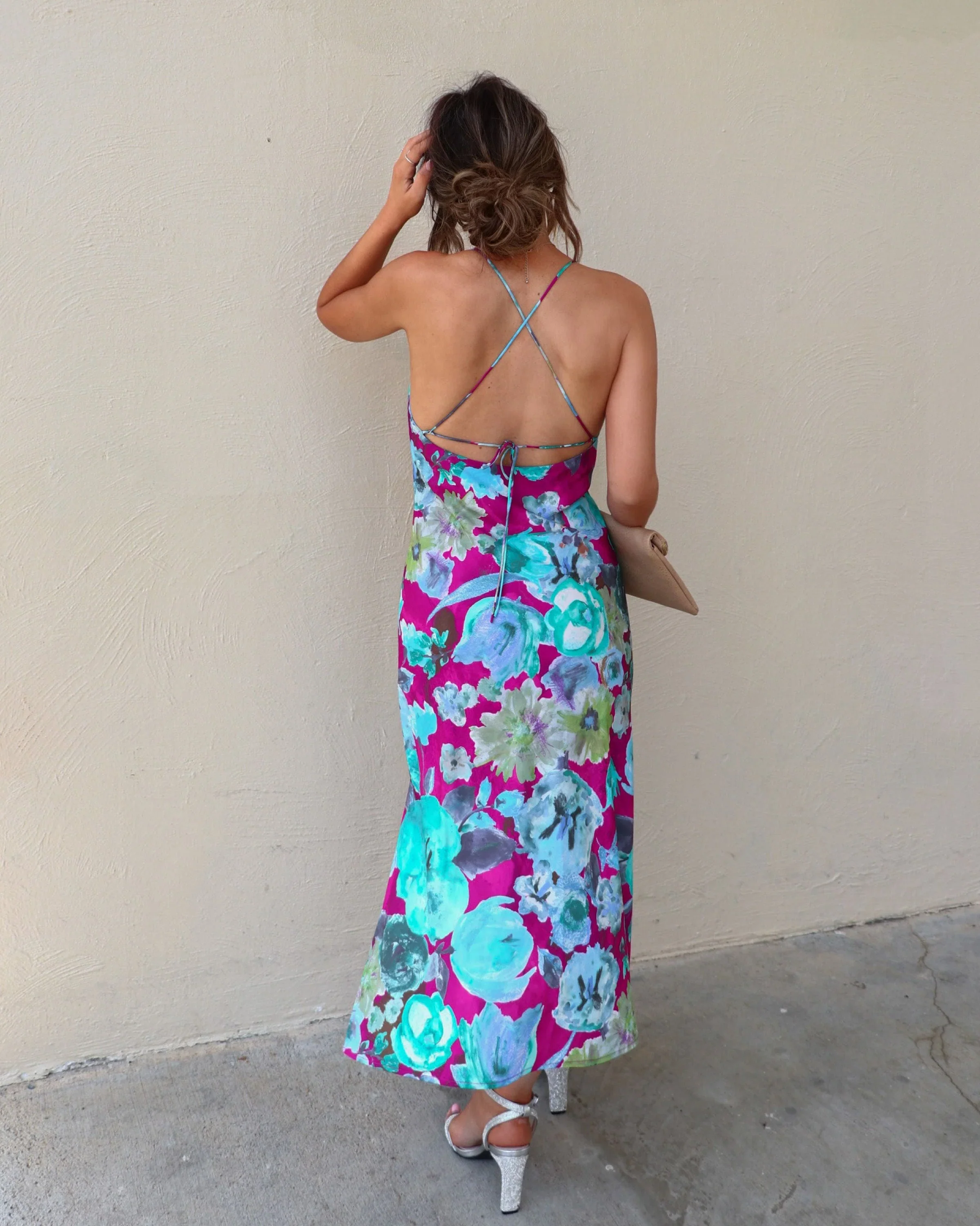 Smell The Roses Satin Slip Midi Dress