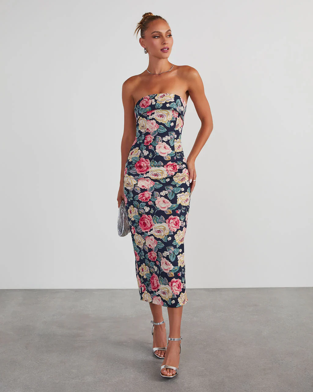 RSVP Yes Strapless Floral Midi Dress