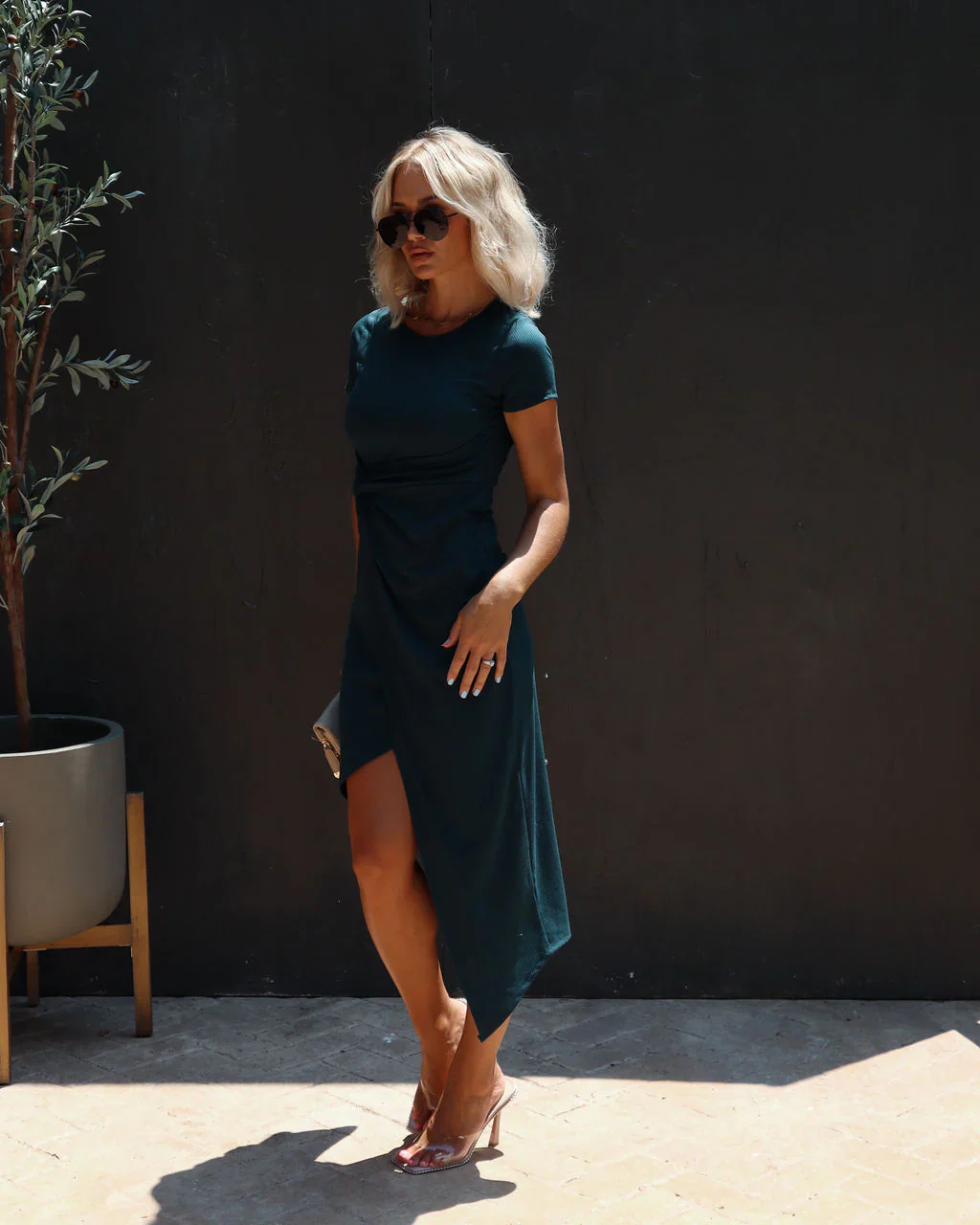 Shannon Twisted Asymmetrical Midi Dress