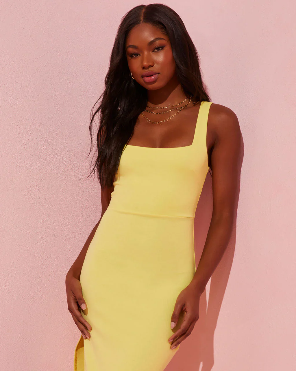 Roslianne Side Slit Midi Dress