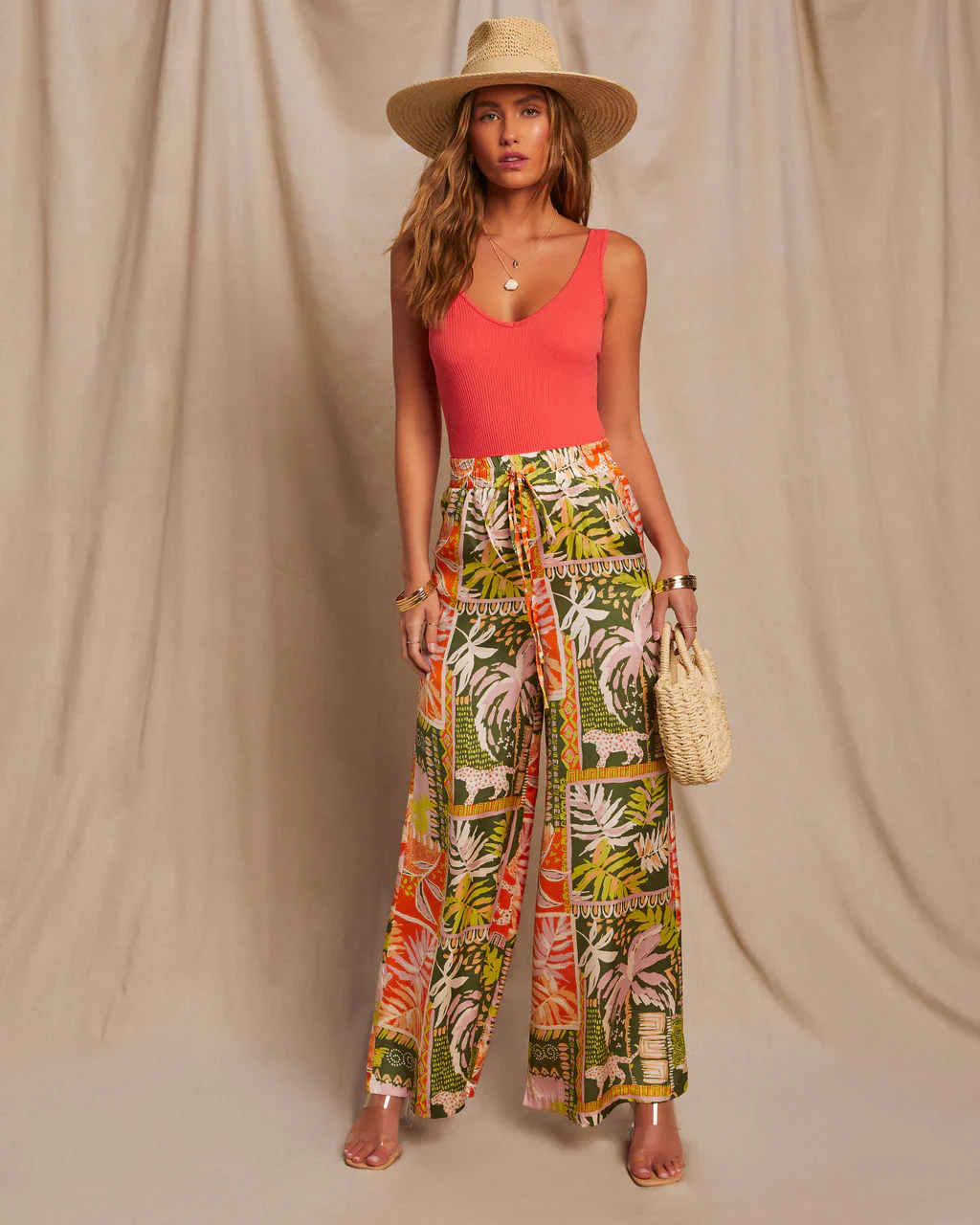 Clearwater Tropical Print Drawstring Wide Leg Pant
