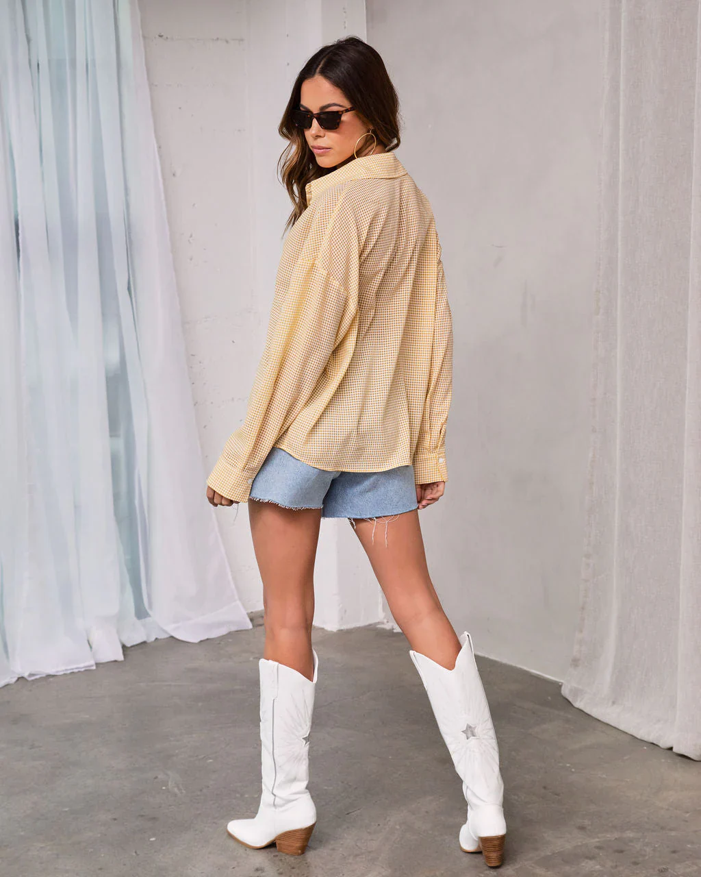 Maye Cotton Gingham Cotton Blend Button Down Top