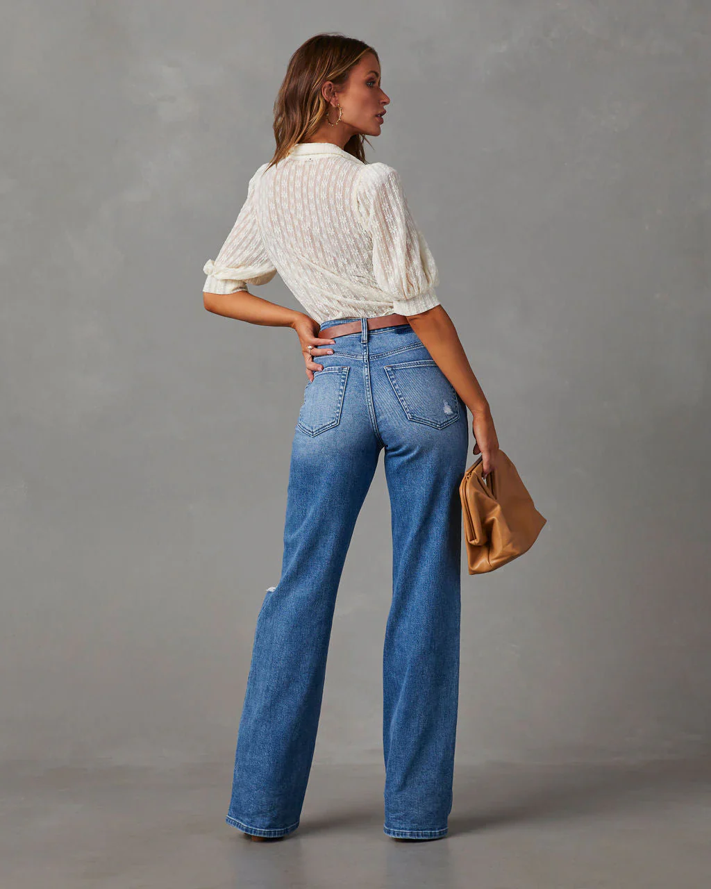 Something Special Ribbed Cotton Eyelet Flutter Sleeve Top