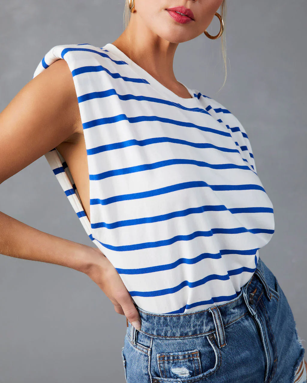 Skipper Cotton Striped Padded Shoulder Muscle Tee