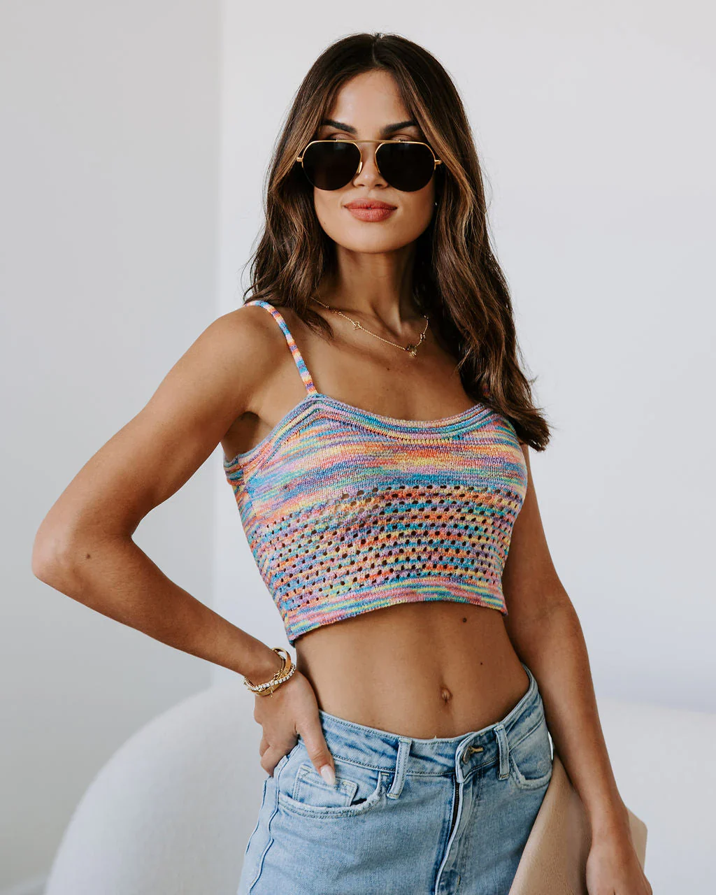 Sienna Knit Stripe Button Down Short Sleeve Top